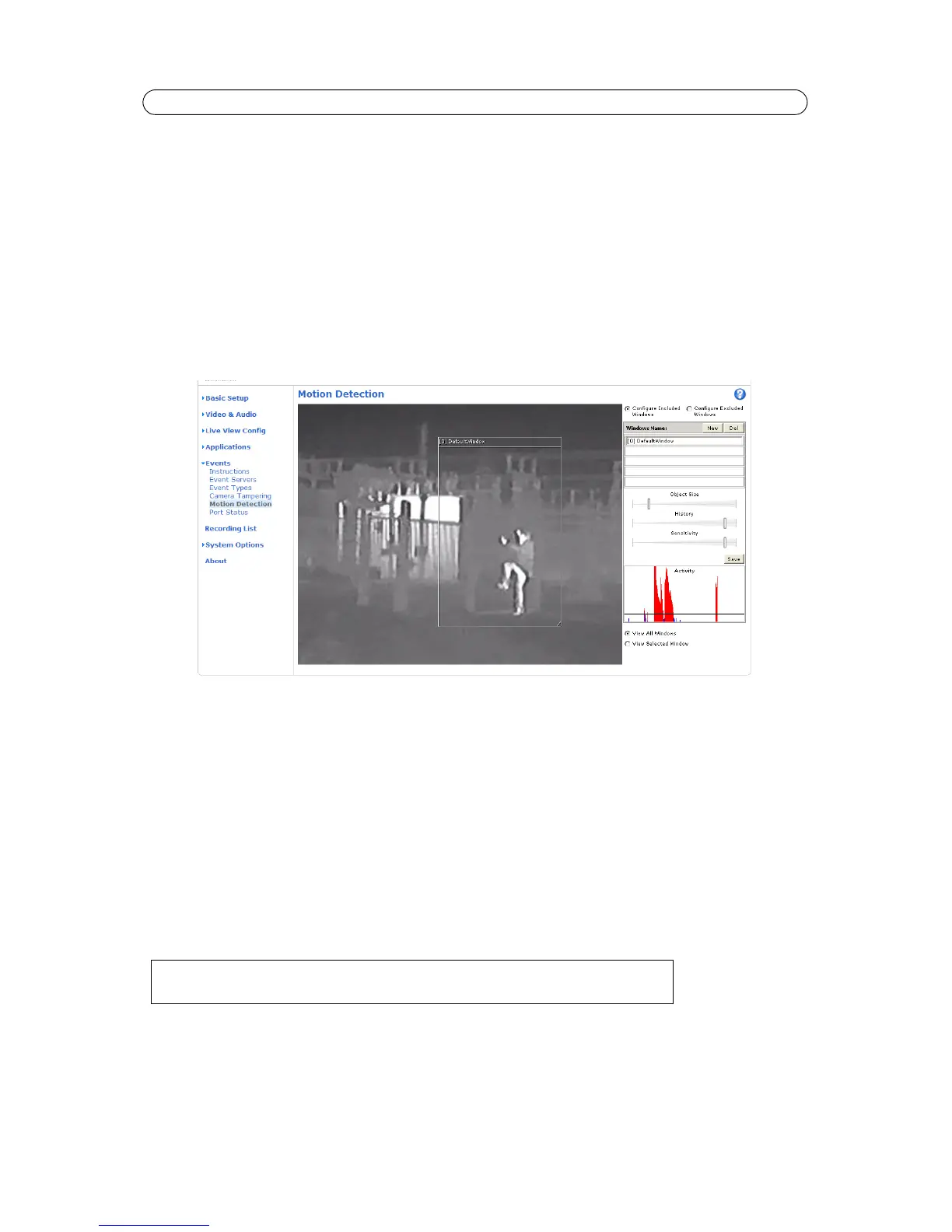 4. Adjust the Object Size, History and Sensitivity profile sliders (see table below for details). Any detected motion within