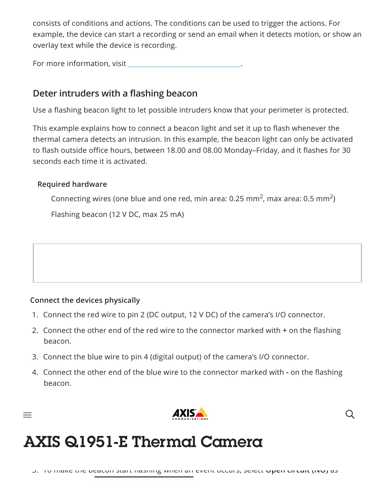 thermal camera detects an intrusion. In this example, the beacon light can only be activated