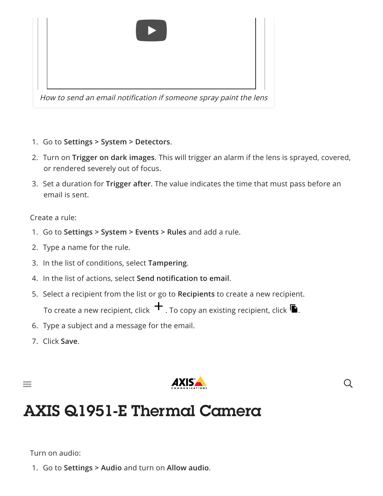 2. Turn on Trigger on dark images. This will trigger an alarm if the lens is sprayed, covered,