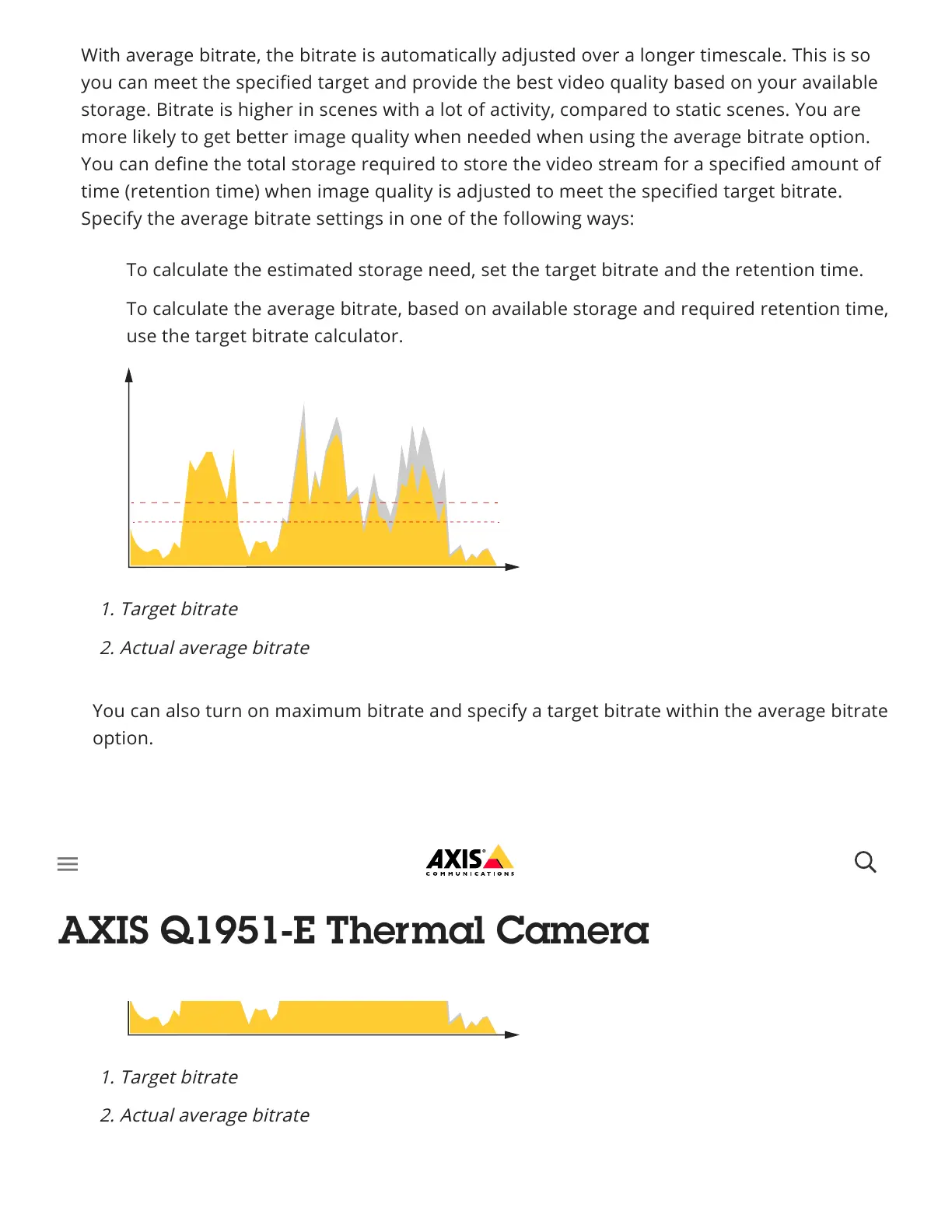 To calculate the estimated storage need, set the target bitrate and the retention time.