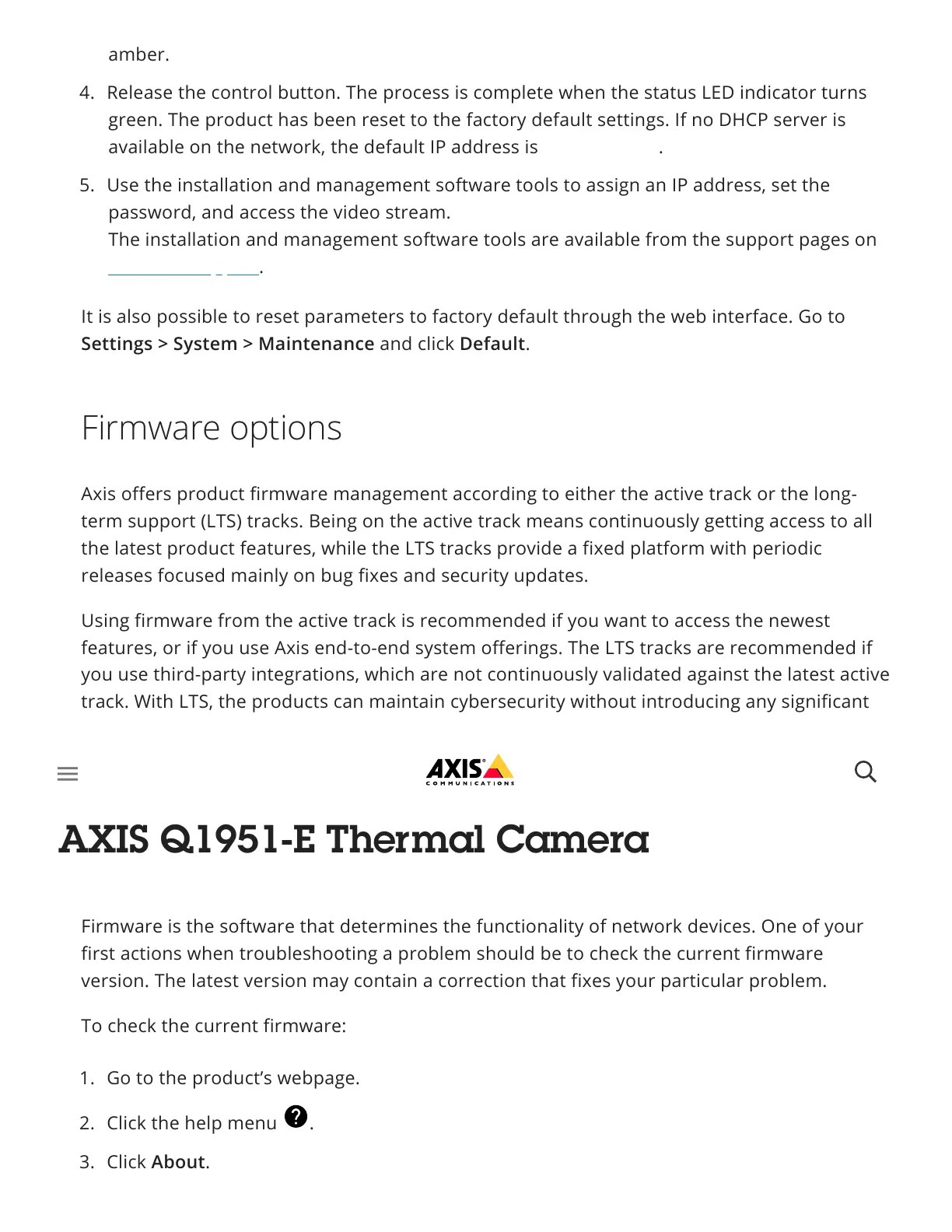 Axis product firmware strategy, go to axis.com/support/firmware.