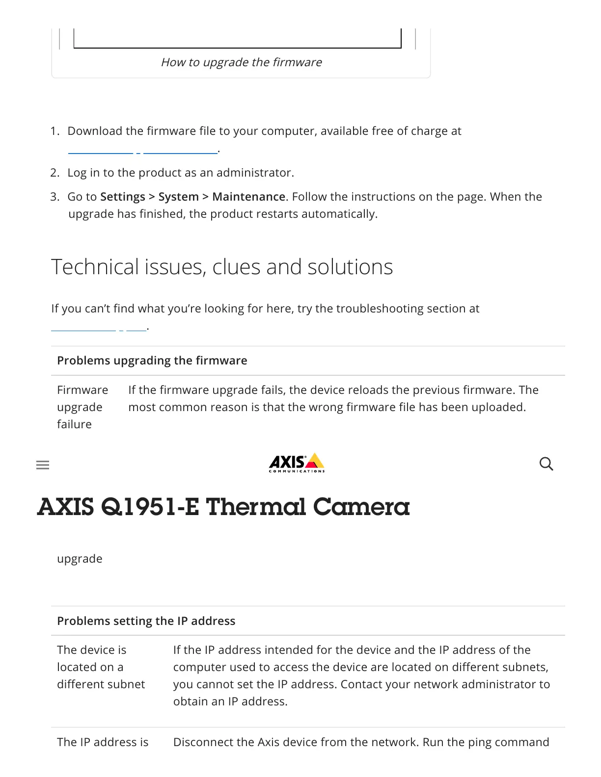 The IP address is Disconnect the Axis device from the network. Run the ping command