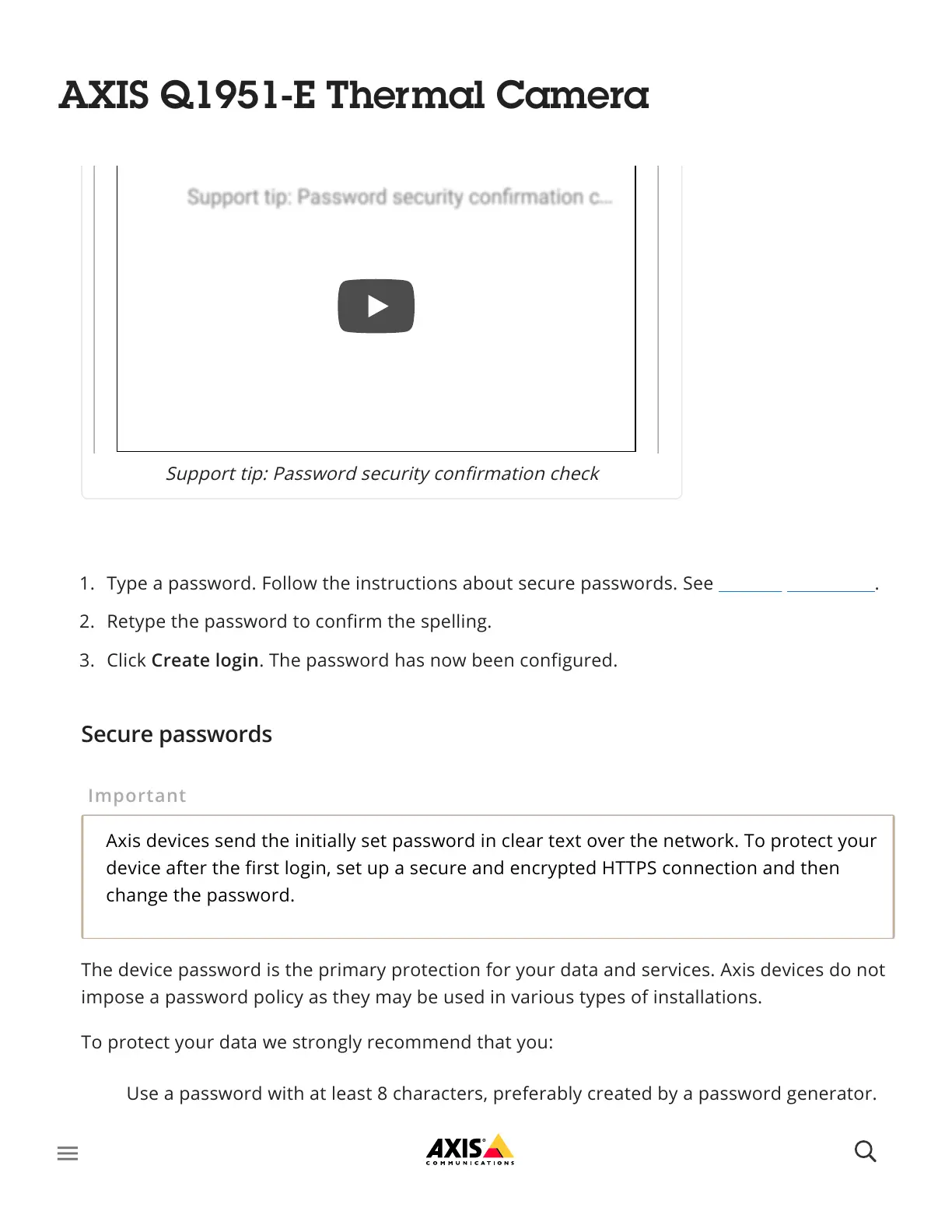 The device password is the primary protection for your data and services. Axis devices do not