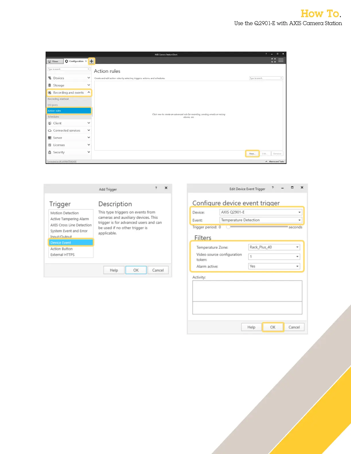 5. The next step is to create an Action rule in AXIS Camera Station. Open the Configuration