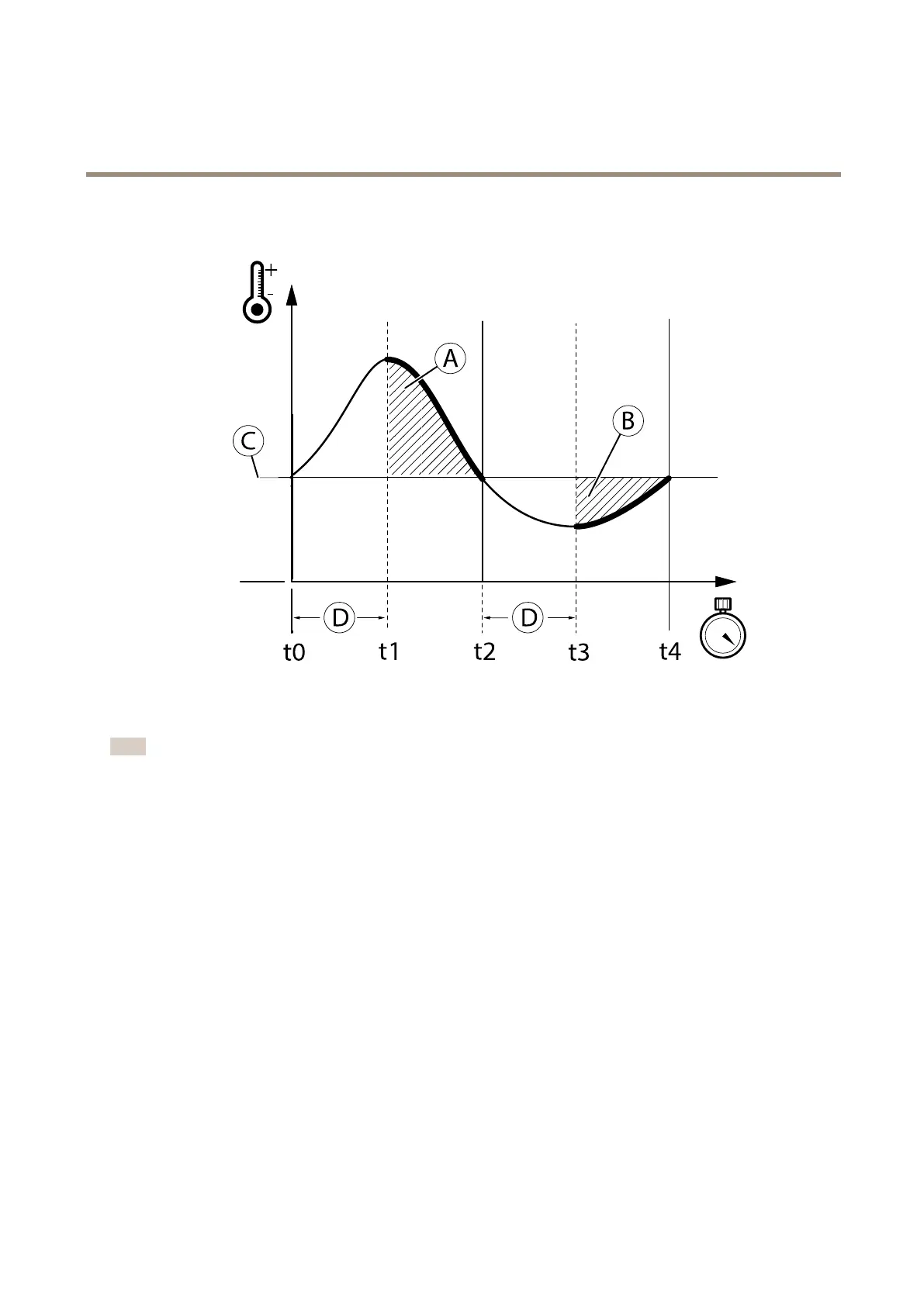 AlarmsaretriggeredaftertheDelaytime(D)haselapsed.Intheexample,anAbovealarmistriggeredbetweent1andt2.A