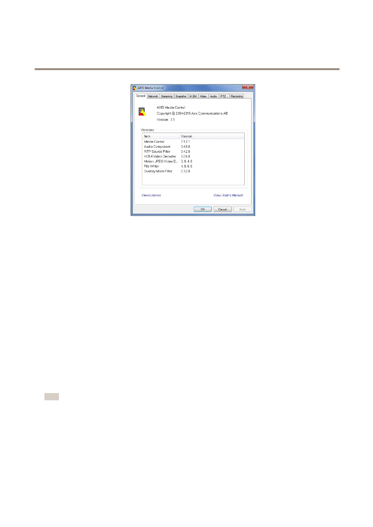 •WindowsMediaPlayer.ThisrequiresAXISMediaControlandtheH.264decodertobeinstalled.Thefollowingpaths