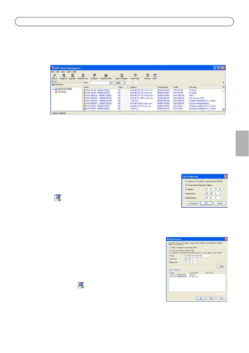 AXIS Camera Management est capable de détecter automatiquement plusieurs dispositifs Axis,