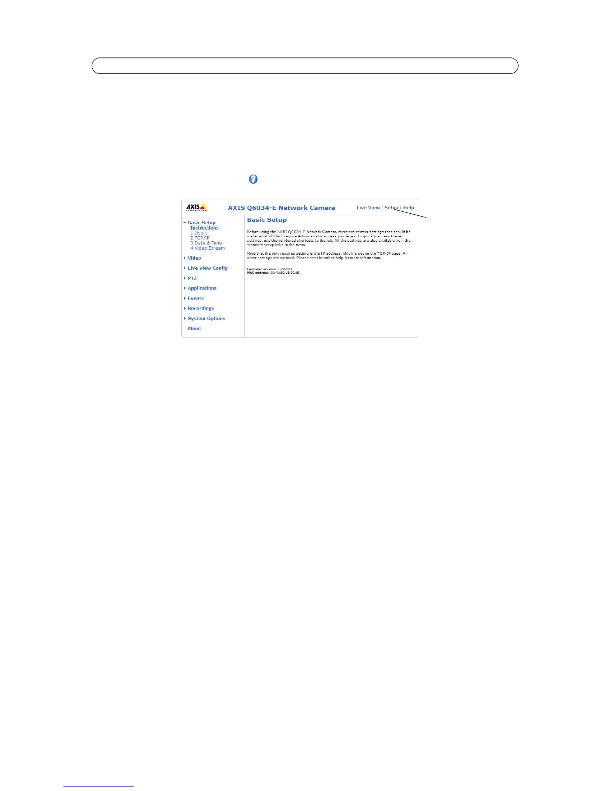AXIS Q6034-E can be configured by users with administrator or operator rights. To access the product’s Setup tools, click