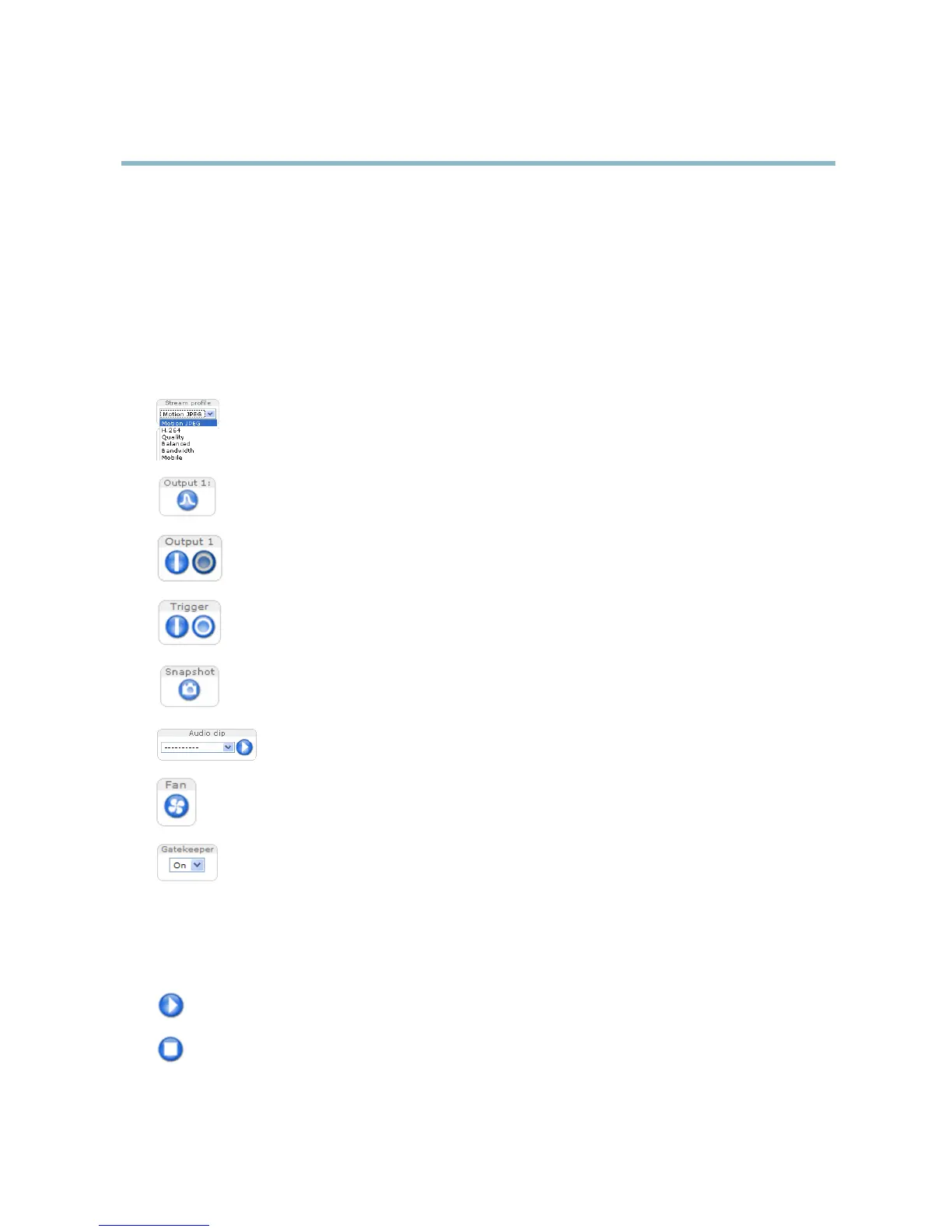 The Play button connects to the Axis product and starts playing a m edia stream.