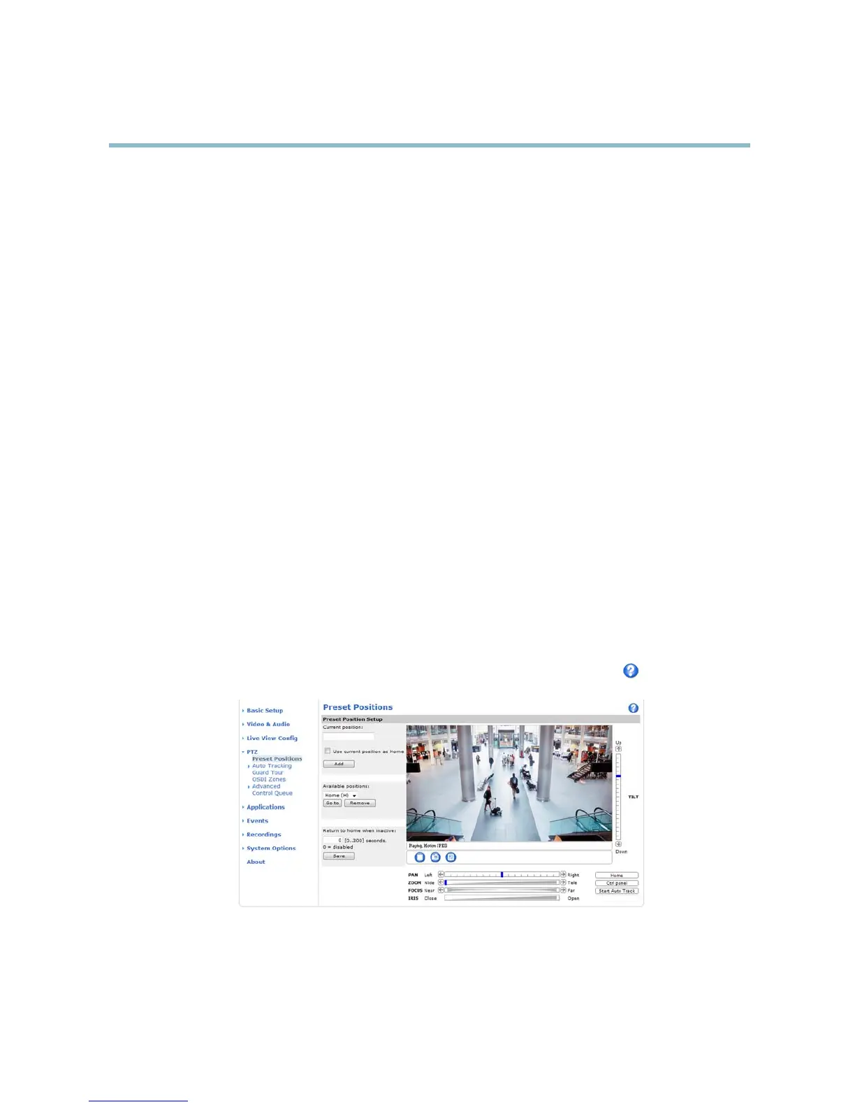 The Home position is readily accessible by clicking the Home buttonontheLiveViewpageandinthePresetP
