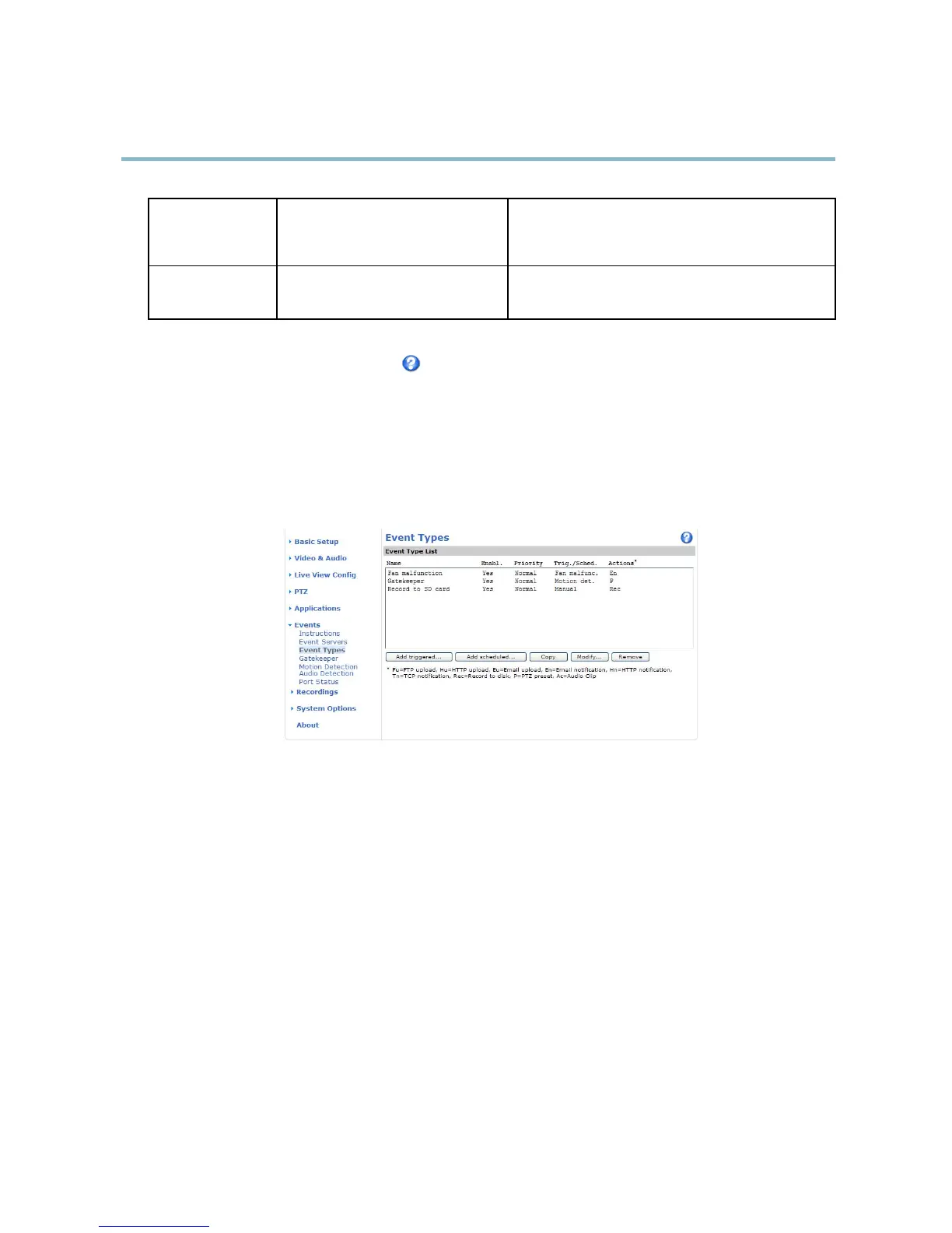 An Event Type describes how and when the Axis product performs certain actions.