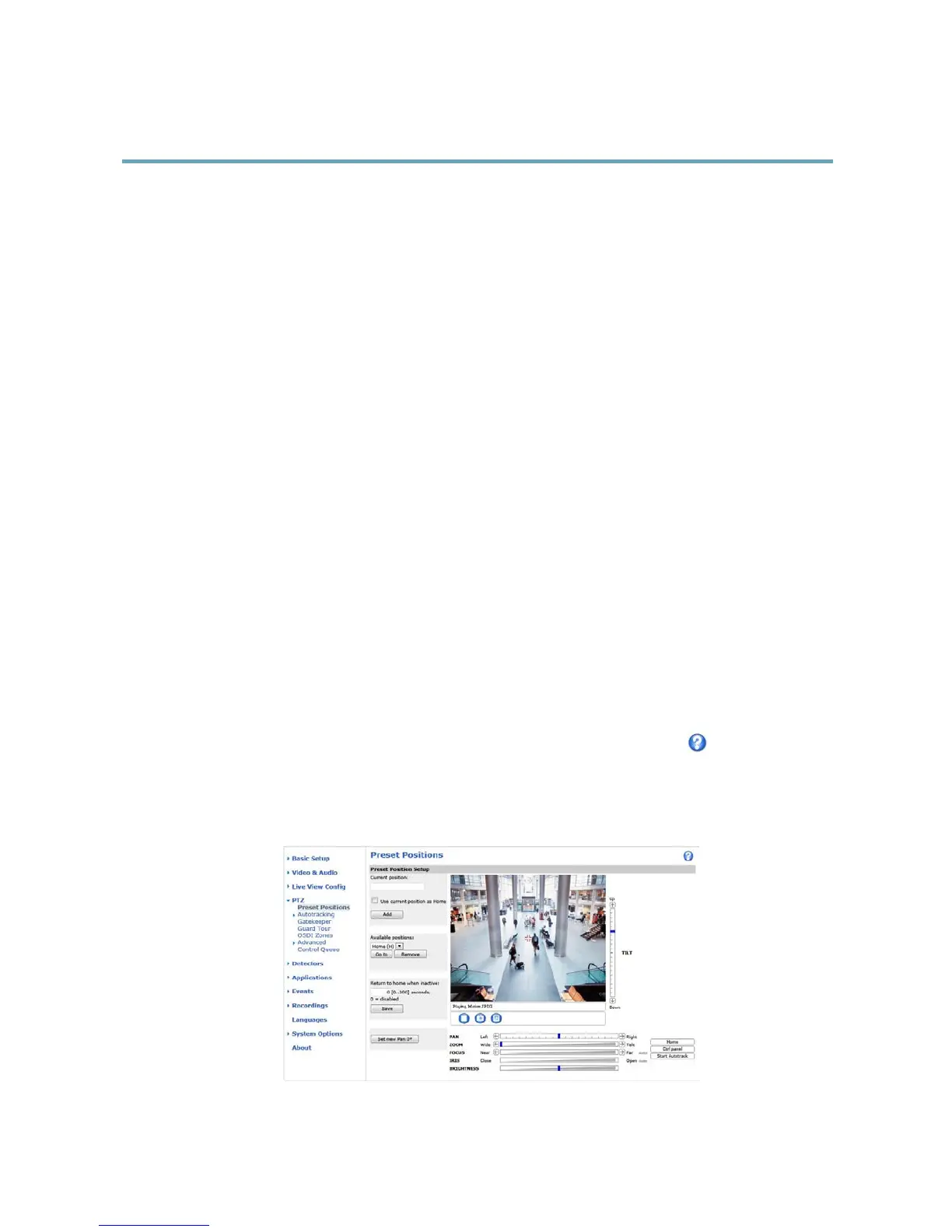 •ByselectingthepresetfromthePresetpositionsdrop-downlistintheLiveViewPage.