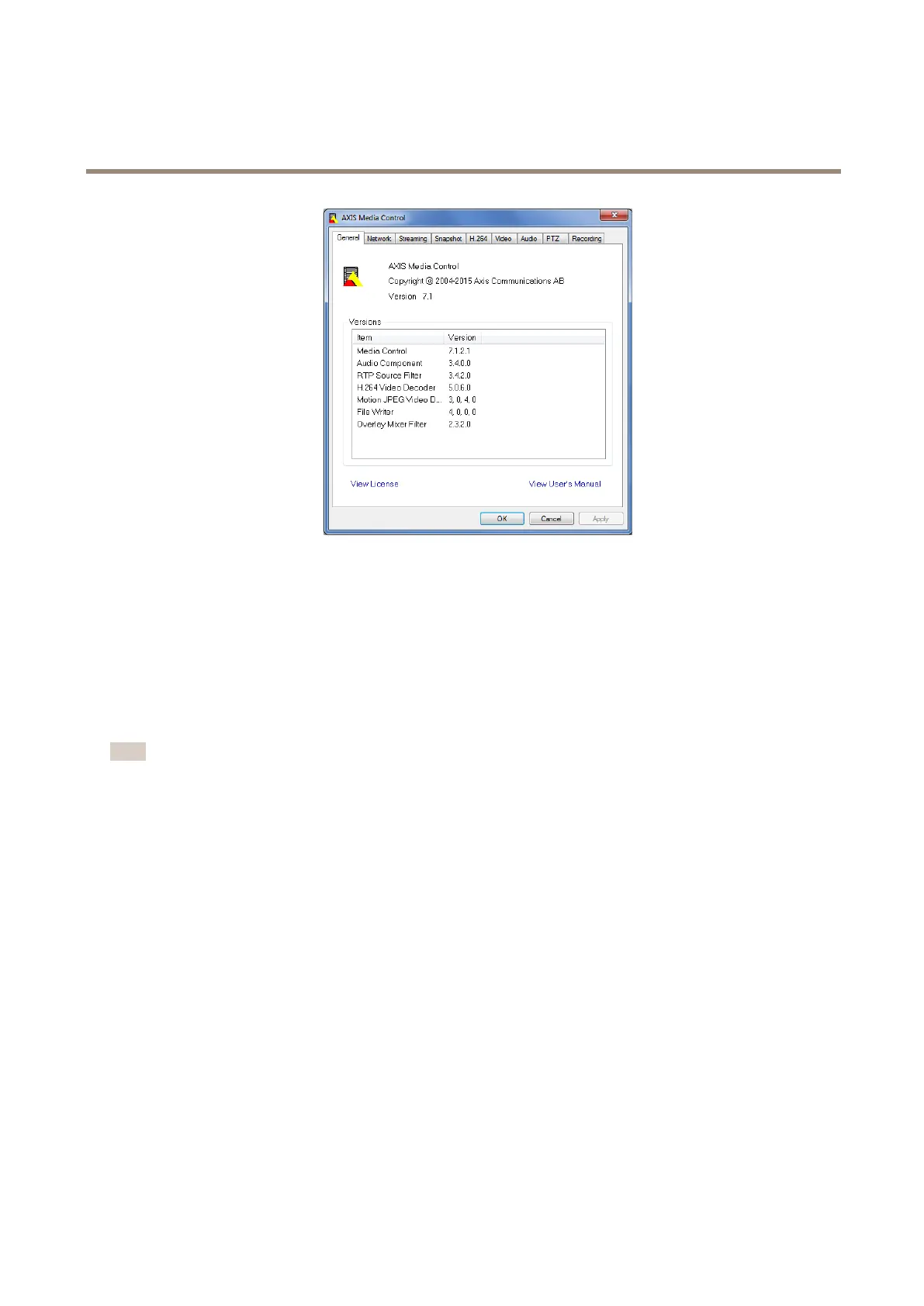 •WindowsMediaPlayer.ThisrequiresAXISMediaControlandtheH.264decodertobeinstalled.Thefollowingpaths