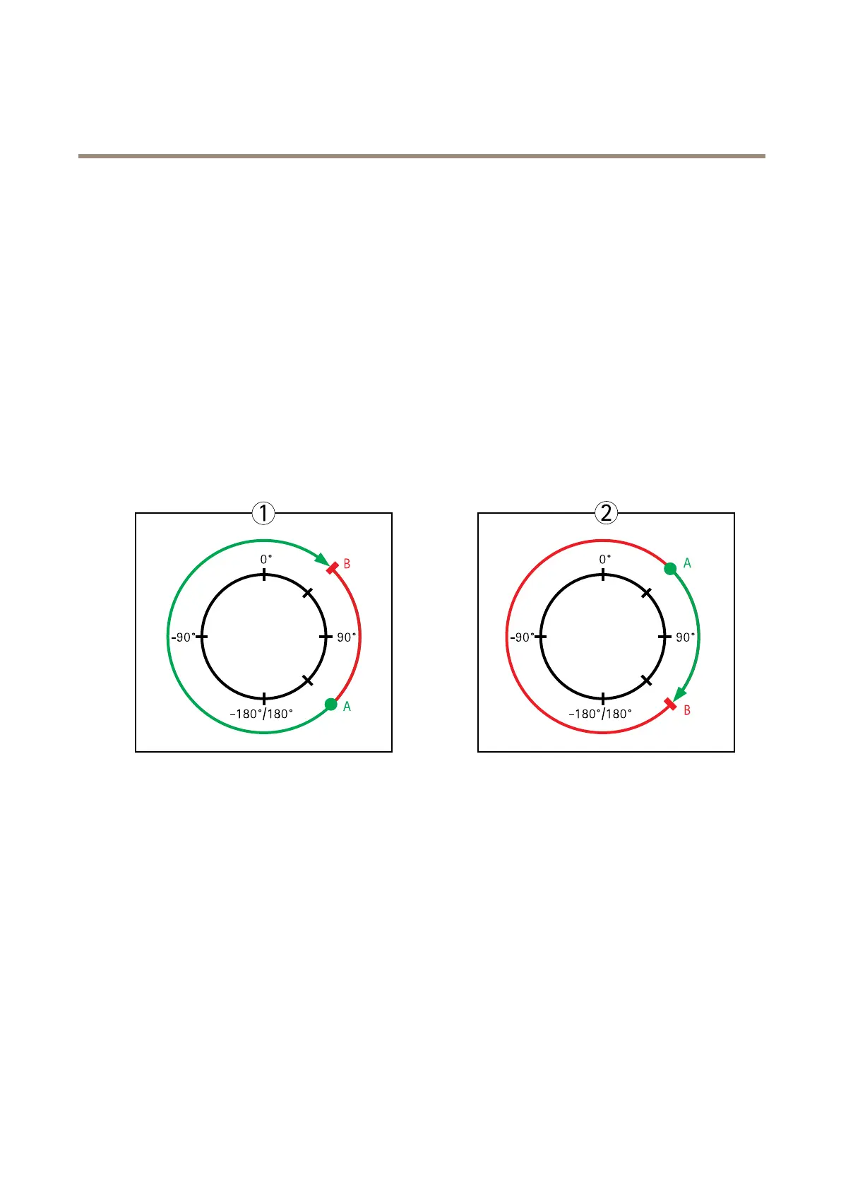 Theillustrationsshowthedifferencebetweensettingarangefrom135°to45°(1)andarangefrom45°to135°(2).