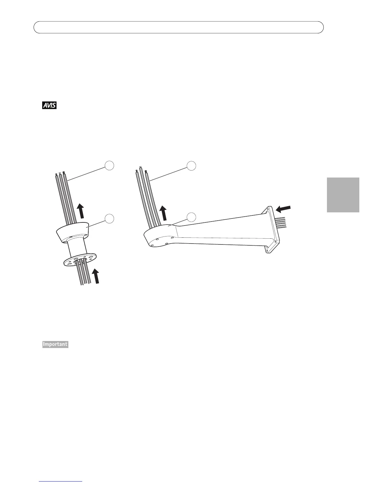 2. Acheminez les câbles de réseau, d'alimentation et, le cas échéant, d' illuminateur à travers le support. Laisser