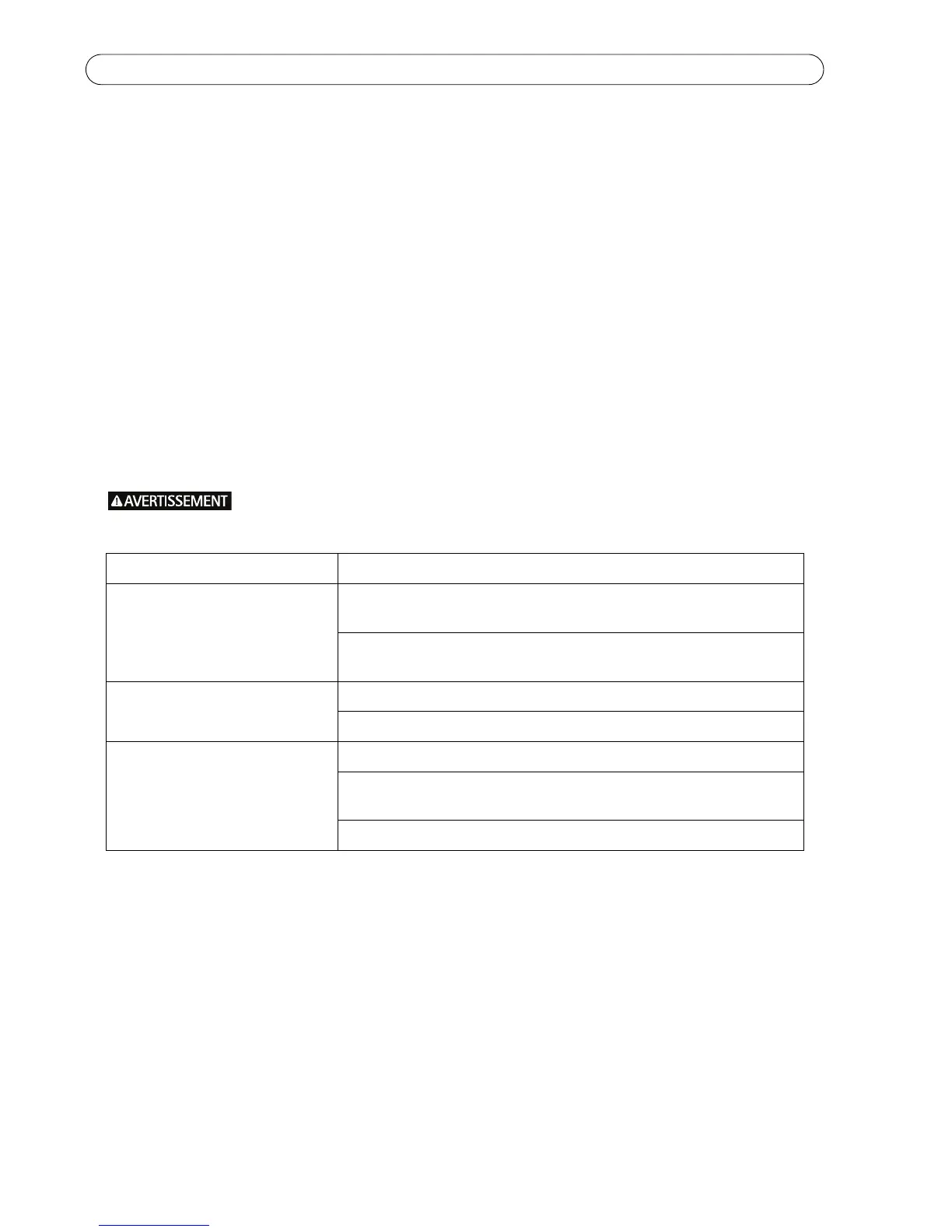 Ce tableau s'applique aux unités de panoramique/inclinaison et d'appareils d'illumination seulement. Pour le