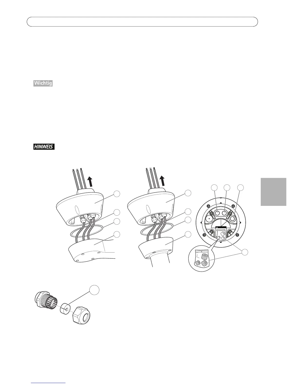 Die Kabelverschraubung für das Netzwerkkabel hat eine vorinstallierte Kabeldurchführung, die für Kabel mit
