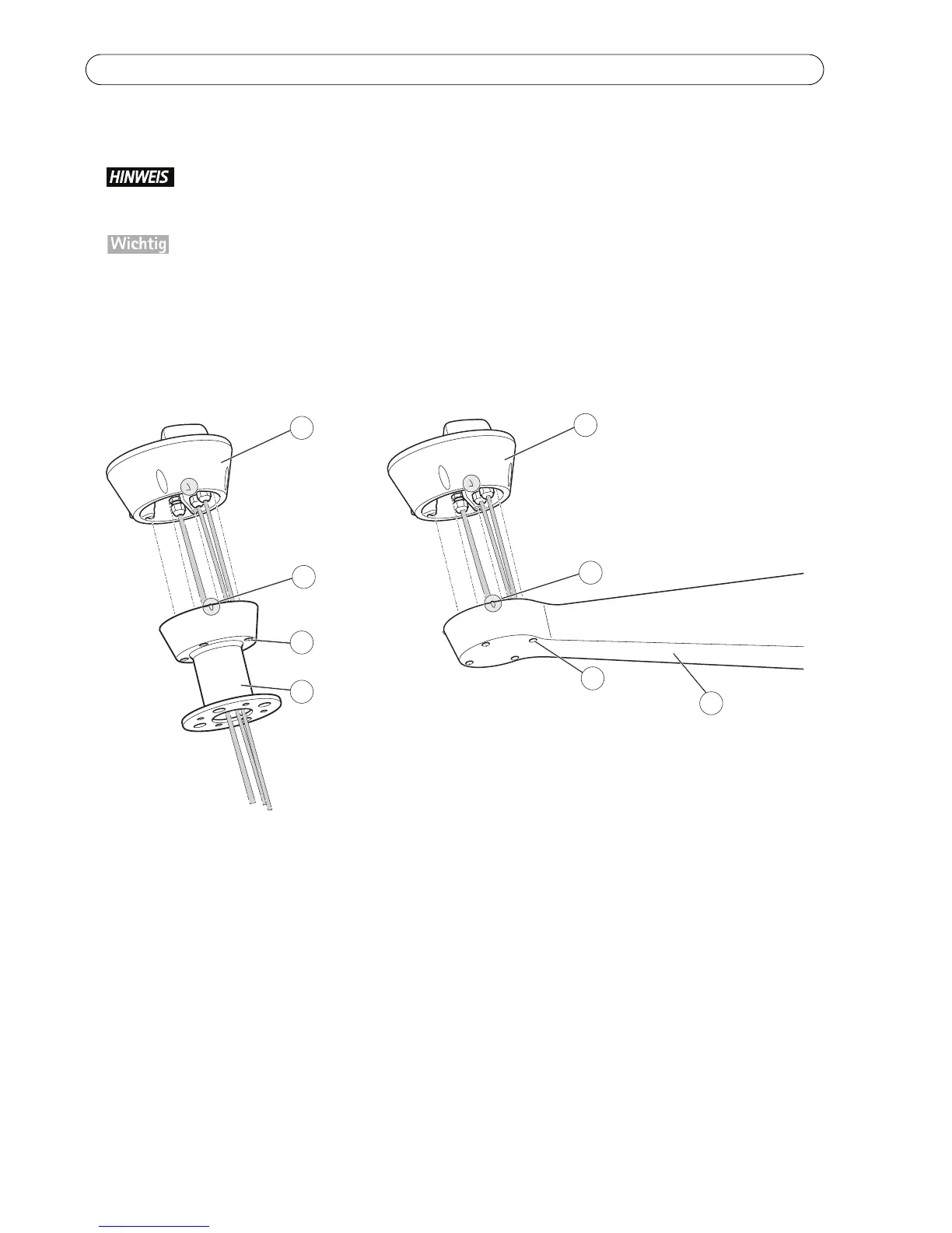 5. Befestigen Sie den Fuß an der Halterung und ziehen Sie die Schrauben fest (Zugmoment 4 Nm).