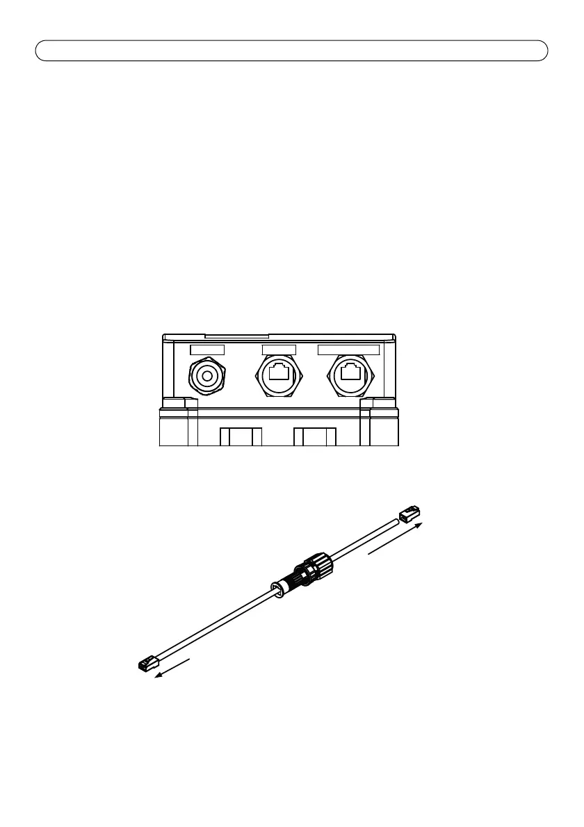 3. Glissez le connecteur d´étanchéité (A) sur le connecteur mâle RJ-45, connecté à DATA IN. Voir