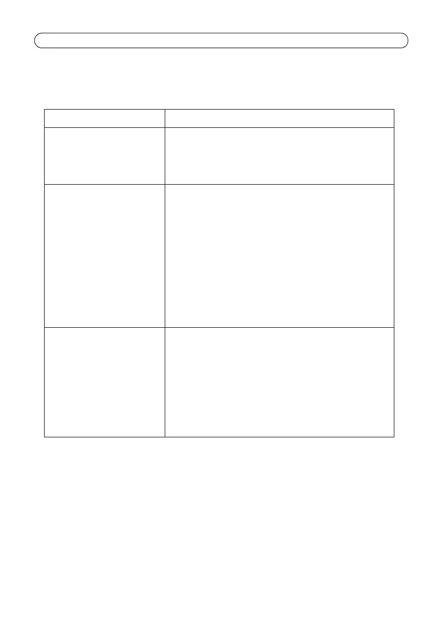 Symptom Corrective steps