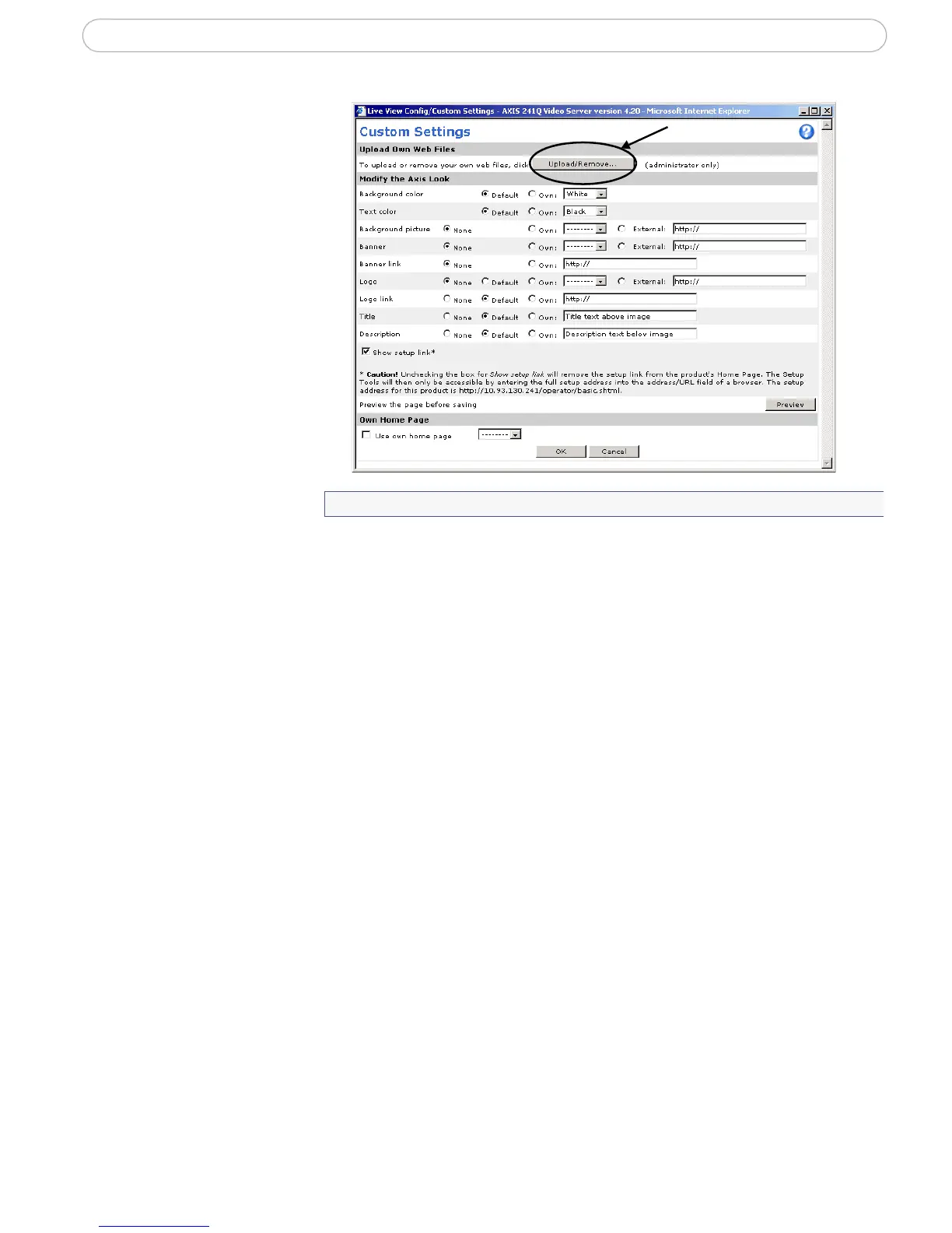 Your own web files, background pictures, etc. must first be uploaded to the Axis video