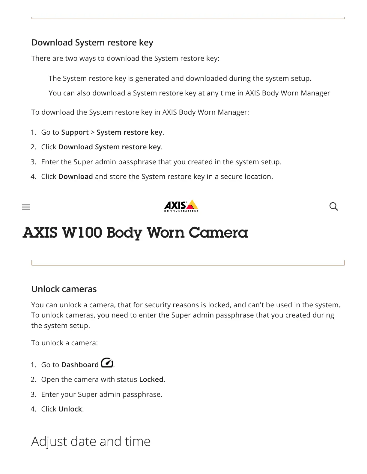 You can also download a System restore key at any time in AXIS Body Worn Manager