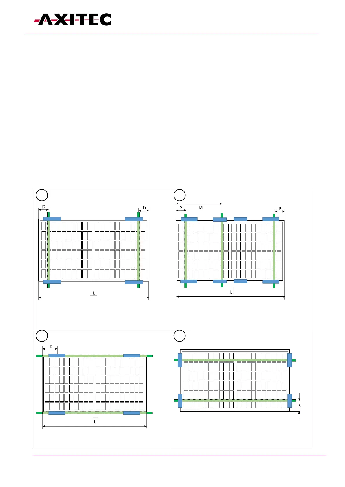 When using mounting clamps, the solar modules are to be mounted on the struts in at least four