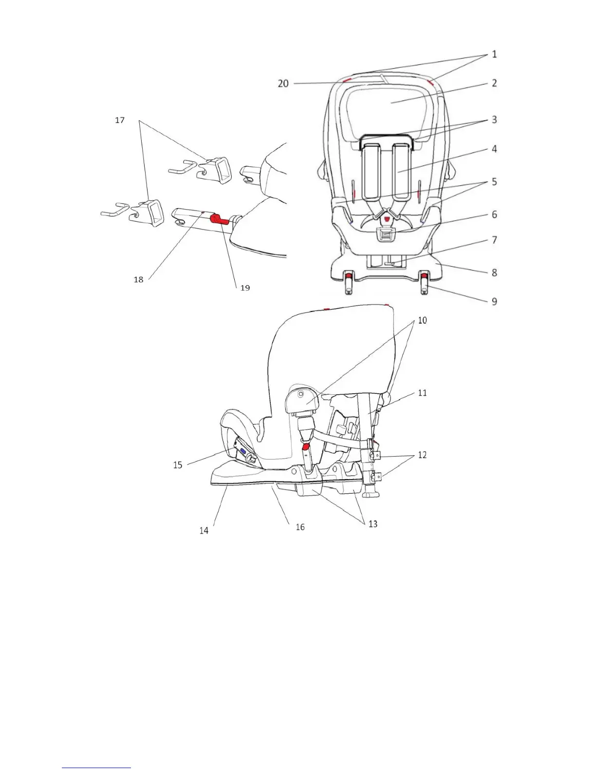 1.Top seat belt guide for forward facing