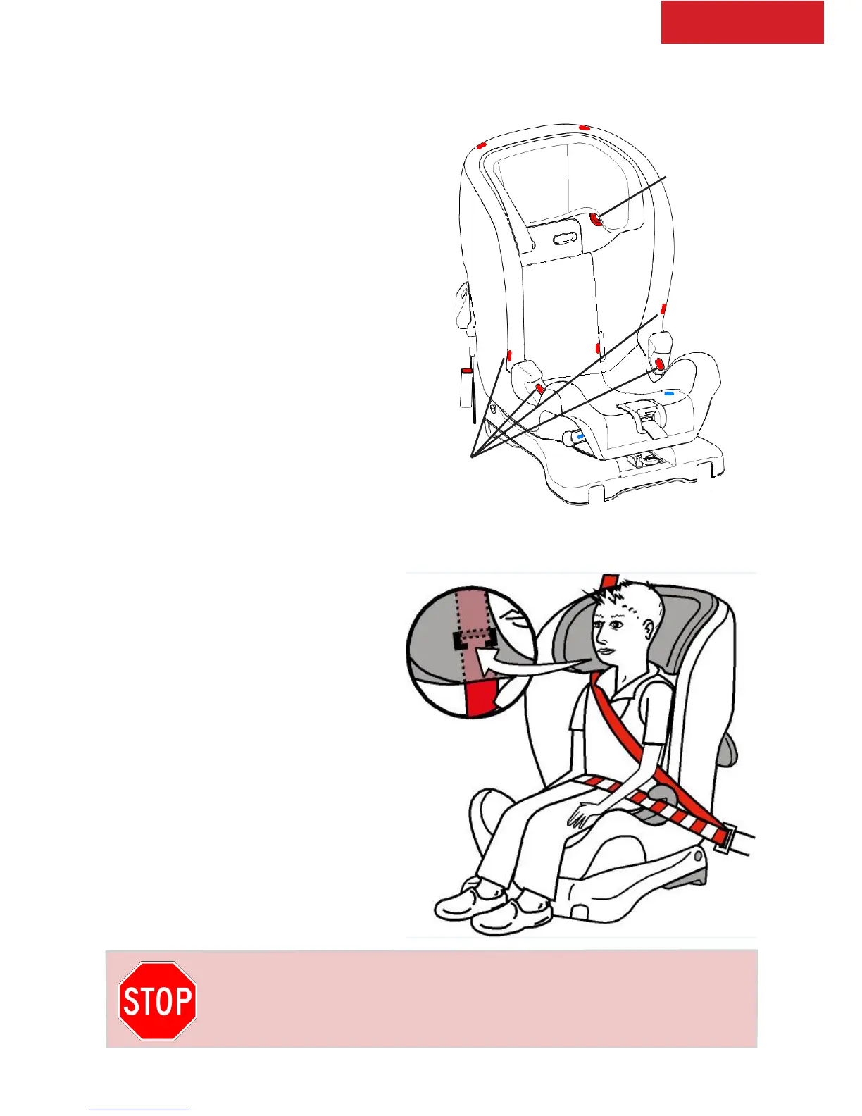 red belt guide (4), located on the car seat