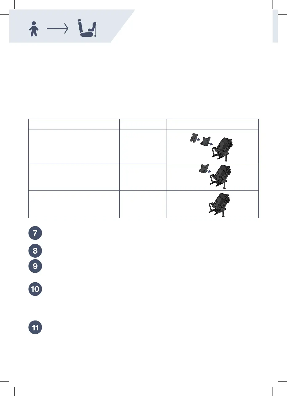 Înainte de a așeza copilul în scaunul auto Axkid One, asigurați-vă că aveți pernele insert potrivite instalate pe scaun.