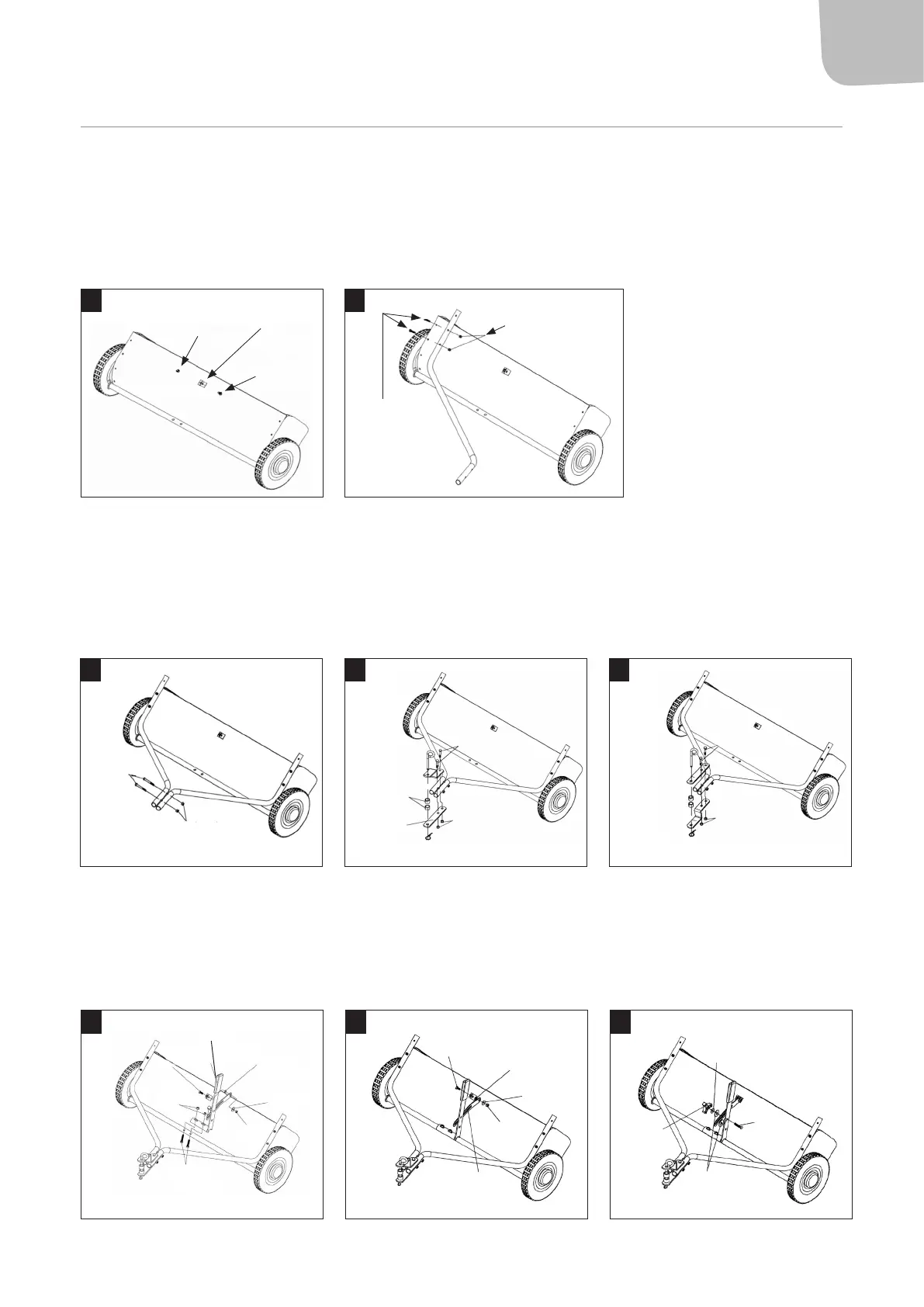 10. Plasser en skrue (M8x20) gjennom vinkelfestet og på den deretter en bøssing, høydejusteringsstag, skive og låsemutter (M8), se gur 7.