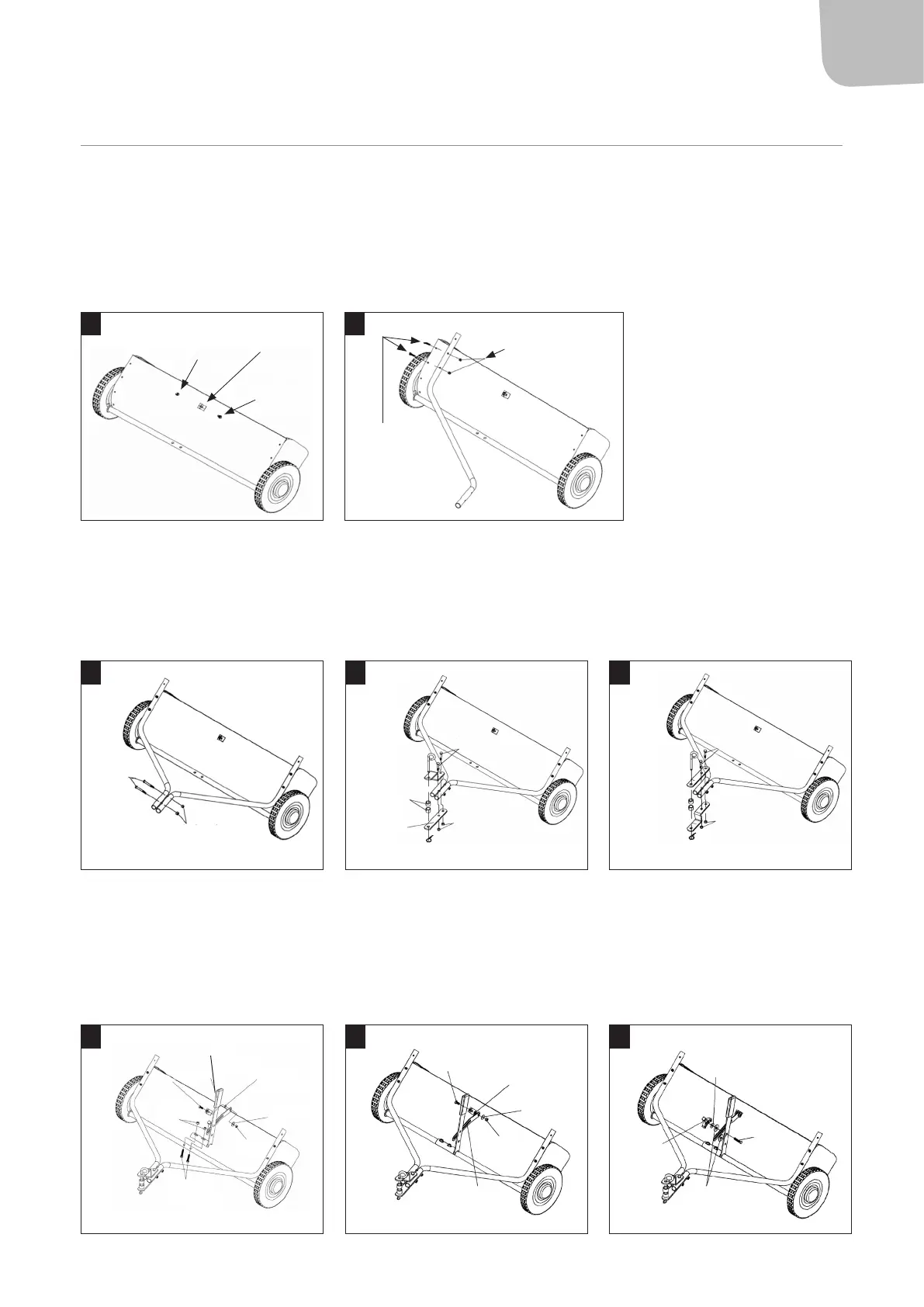 5. The sweeper hitch is mounted in dierent ways, depending on the height of the tractor/lawnmower hitch (gs. 4 and 5).