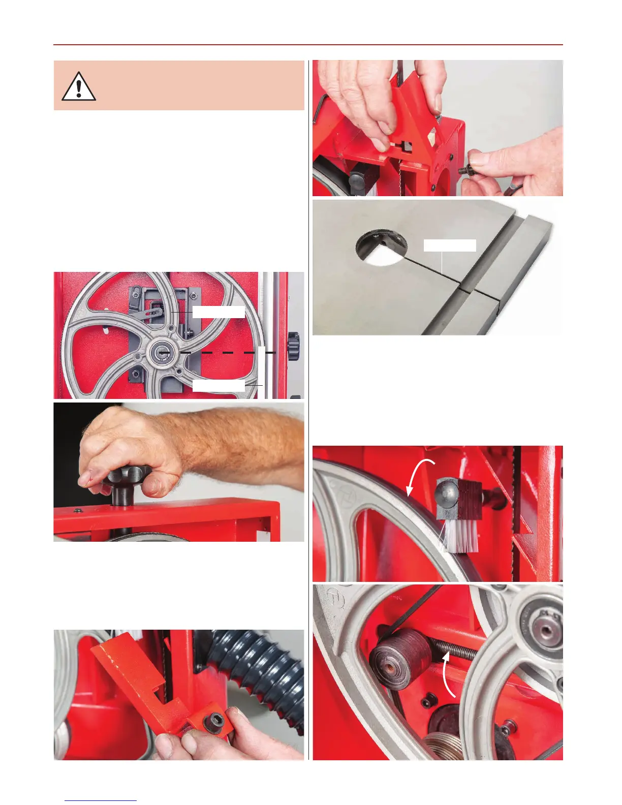and open the wheel doors. Set the upper blade guide assembly