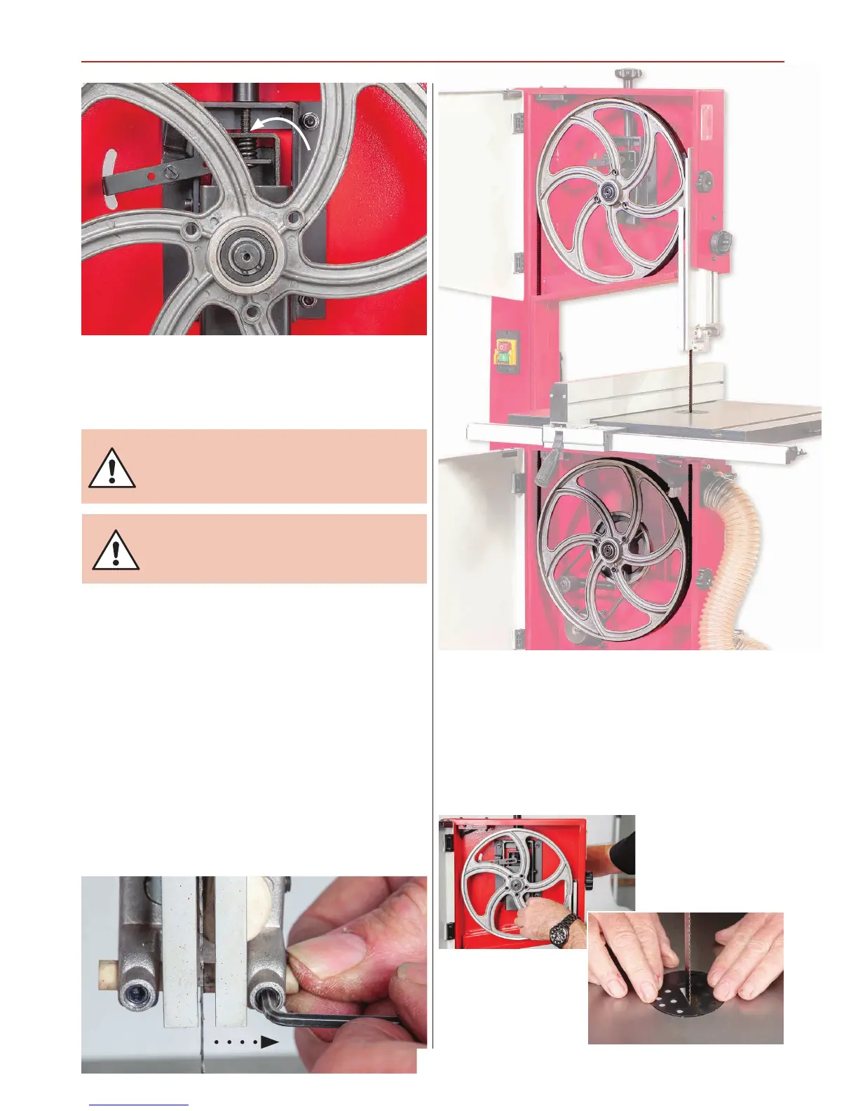 tension and check by once again spinning the upper saw wheel