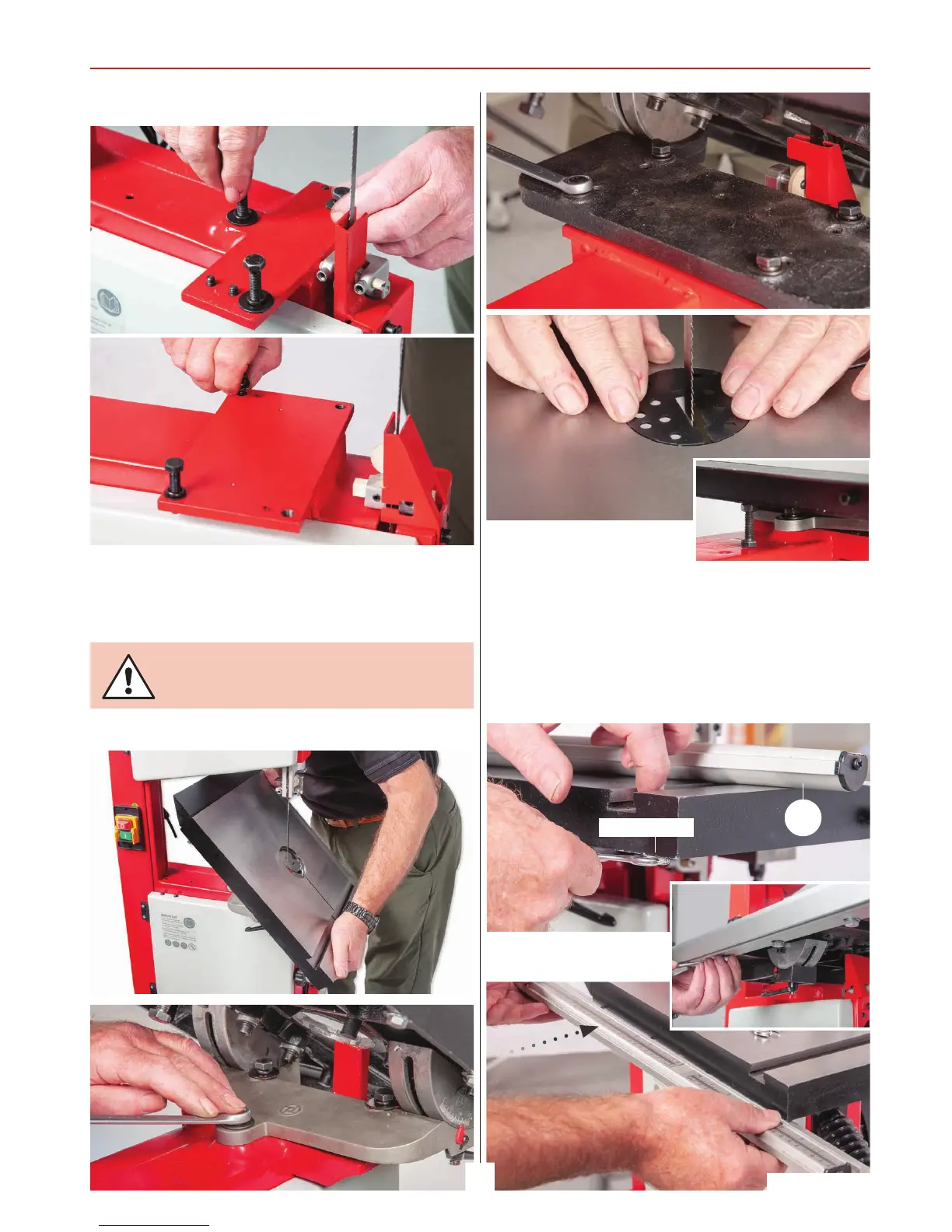 Loosen the bolts beneath the table (2), giving enough