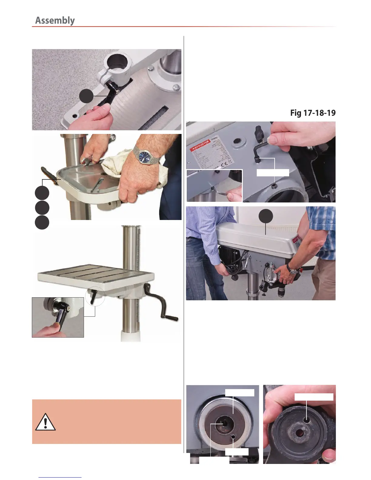 hole to the end of the mounting arm. Lower the drill table (4,4a,4b)