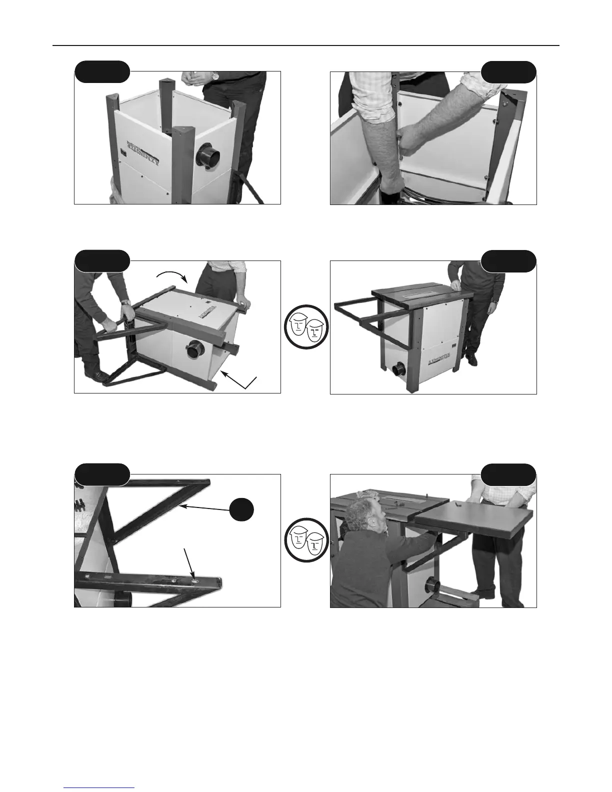Locate the table and the other 4 No. M8 caphead bolts and washers (9A). Mount the table onto