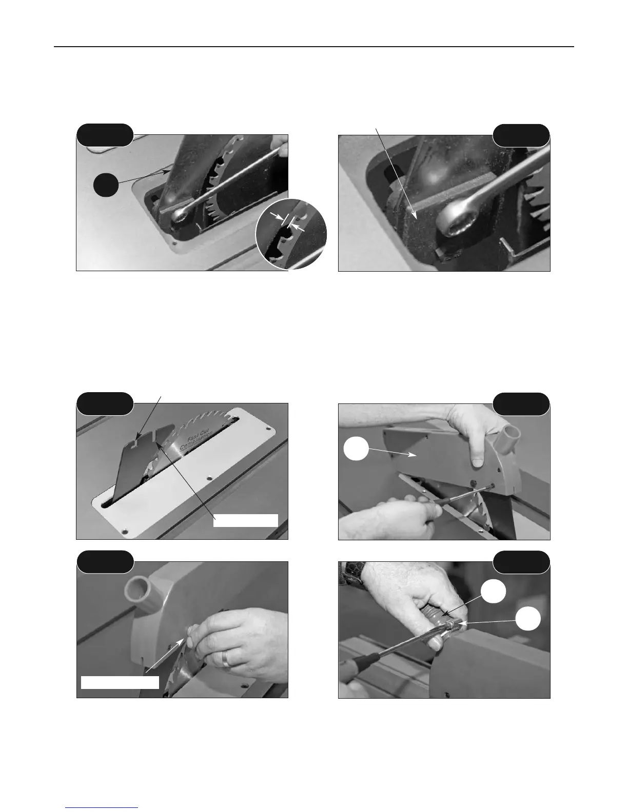 close to the blade, (gap about 2-3mm if possible). Tighten the clamping bolts securely. (See figs 23-