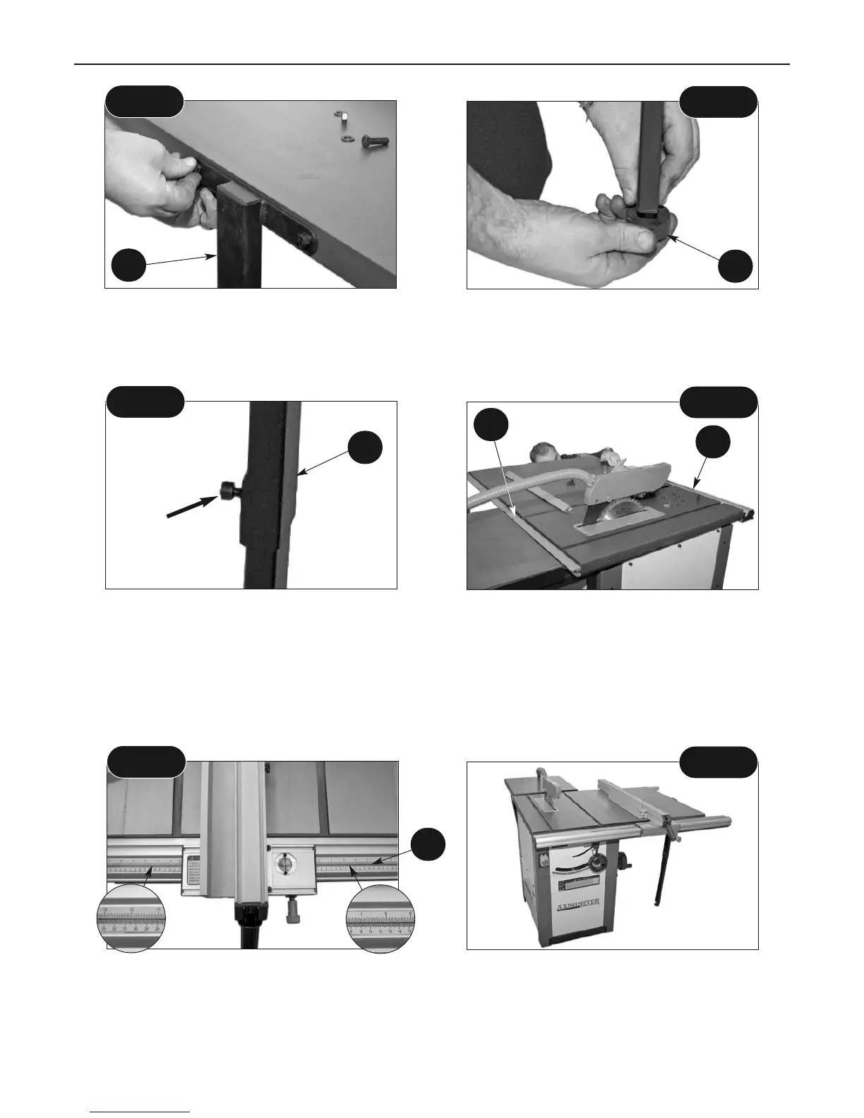 Replace both long rip fence rails (33-34) as described on the previous page and replace the rip
