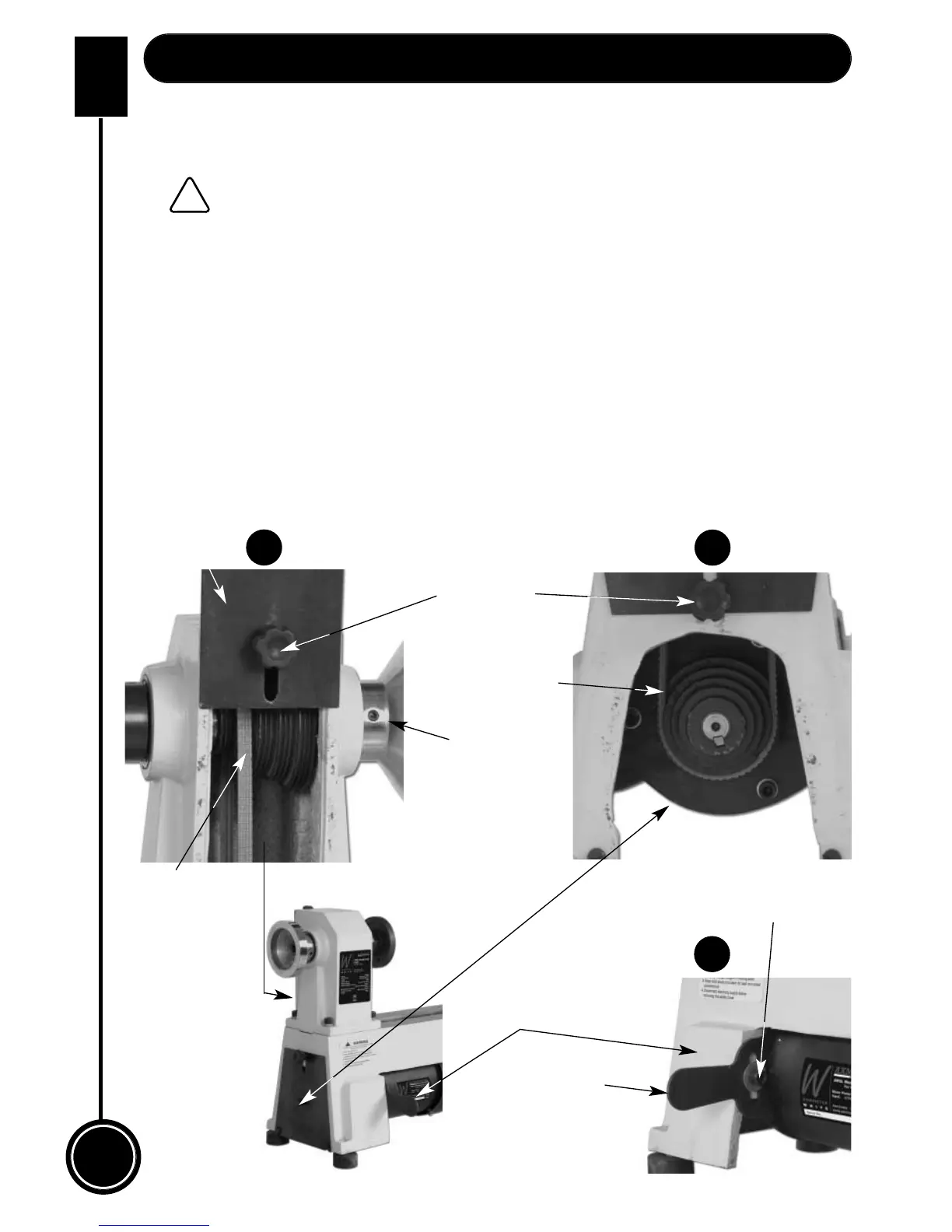 Note. The lowest speed pulley combination is furthest from the faceplate, i.e. smallest motor