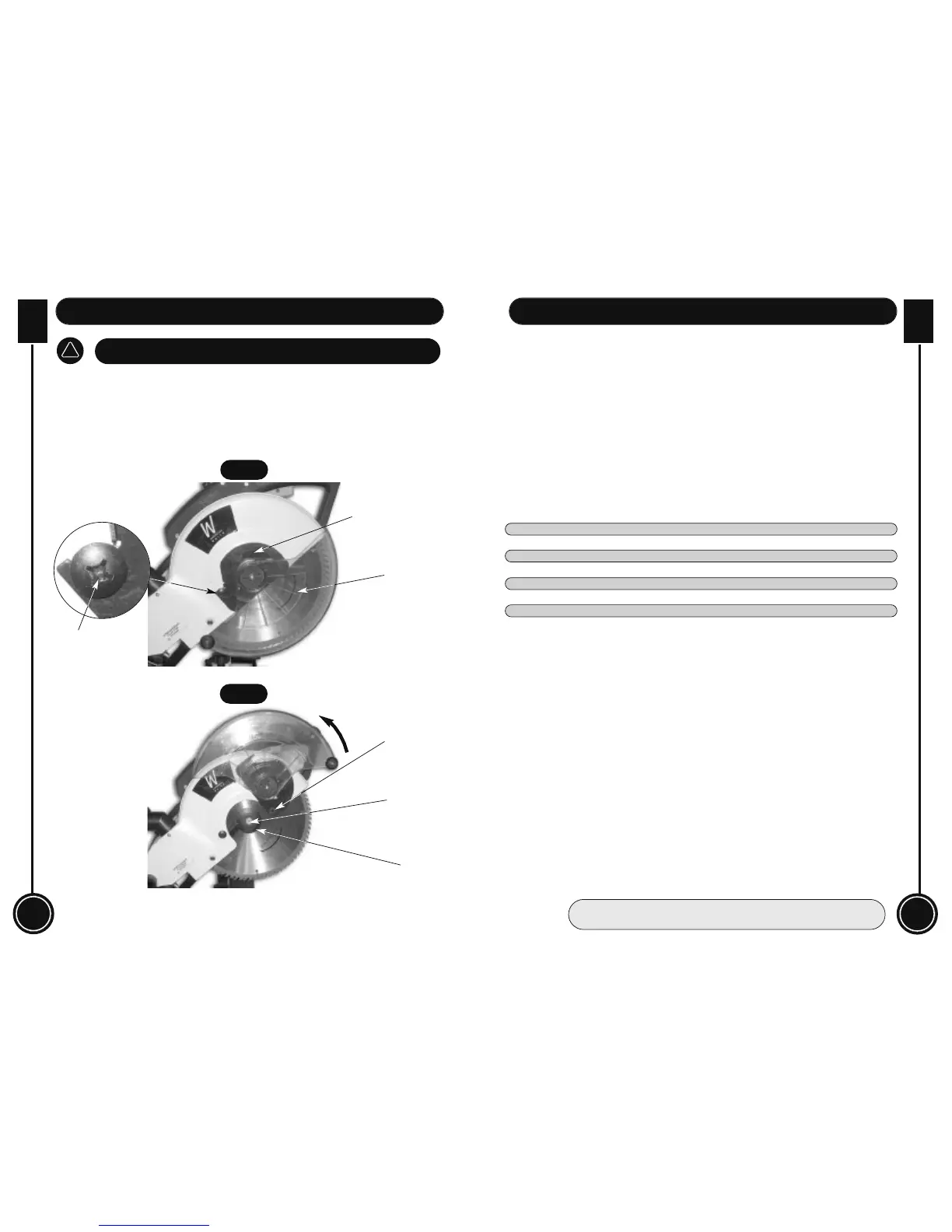 out of the way, to enable access to the saw arbor bolt. (See fig R) Engage the saw arbor lock and fit a