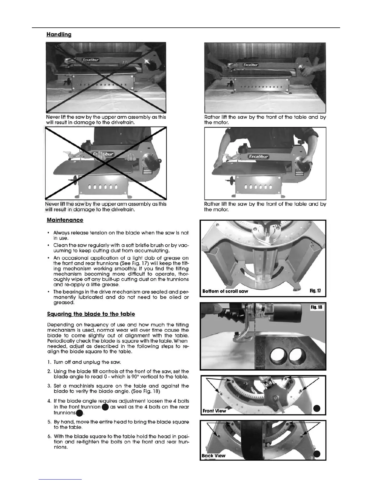 Axminster Excalibur EX-21 - Maintenance, Adjustments & Servicing