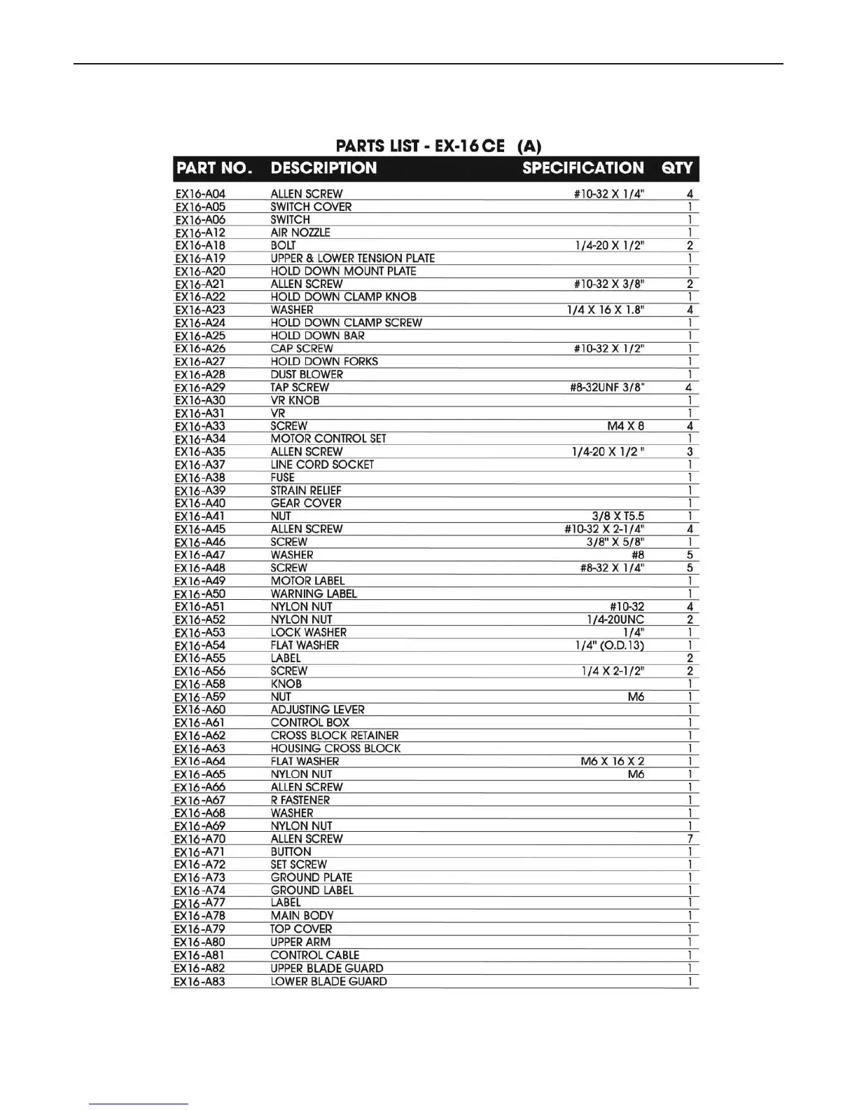 EX-16 Parts List (A)