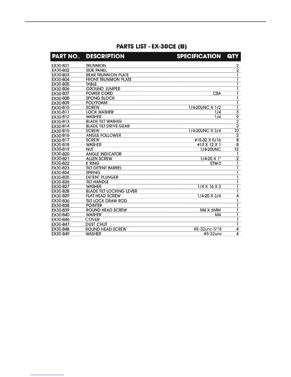EX-30 Parts List (B)