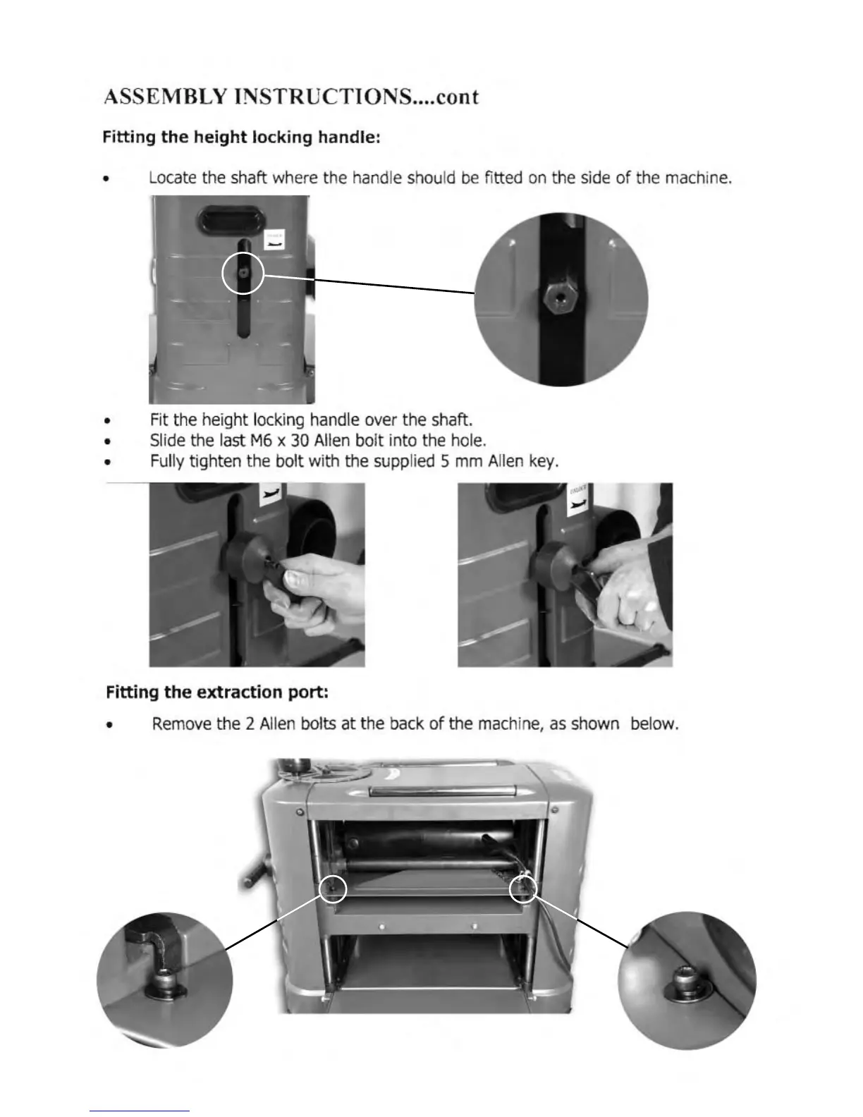 Axminster MB1933 - Fitting the Height Locking Handle; Fitting the Extraction Port