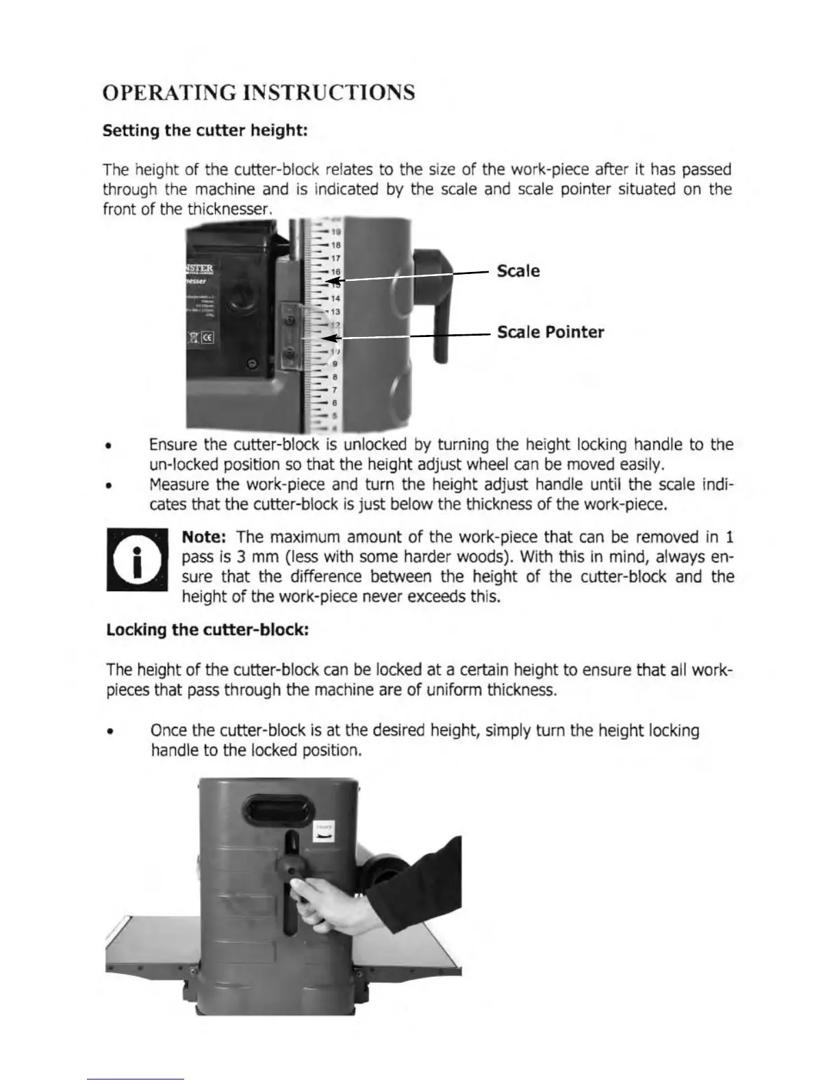 Axminster MB1933 - Operating Instructions; Setting the Cutter Height; Locking the Cutter-Block