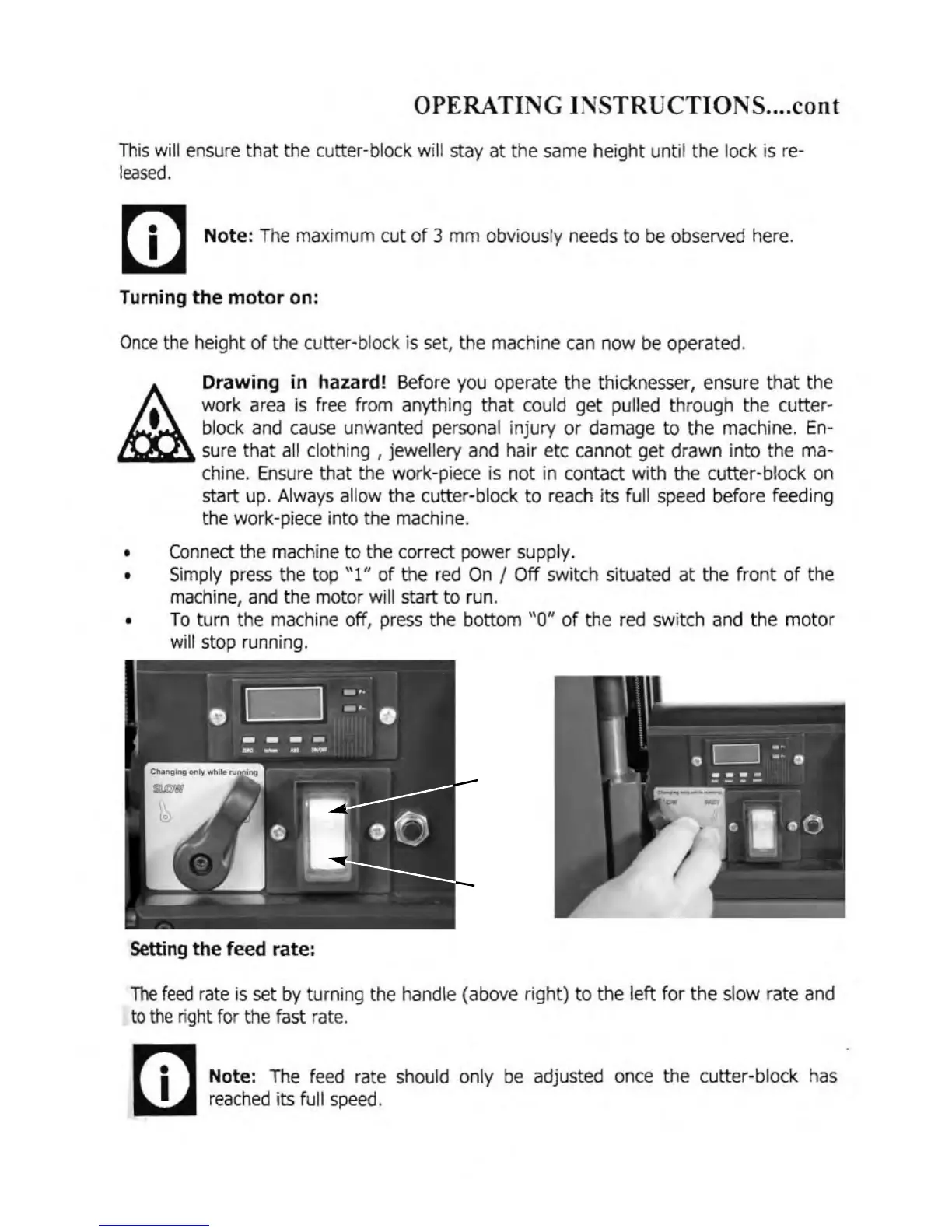Axminster MB1933 - Turning the Motor On; Setting the Feed Rate