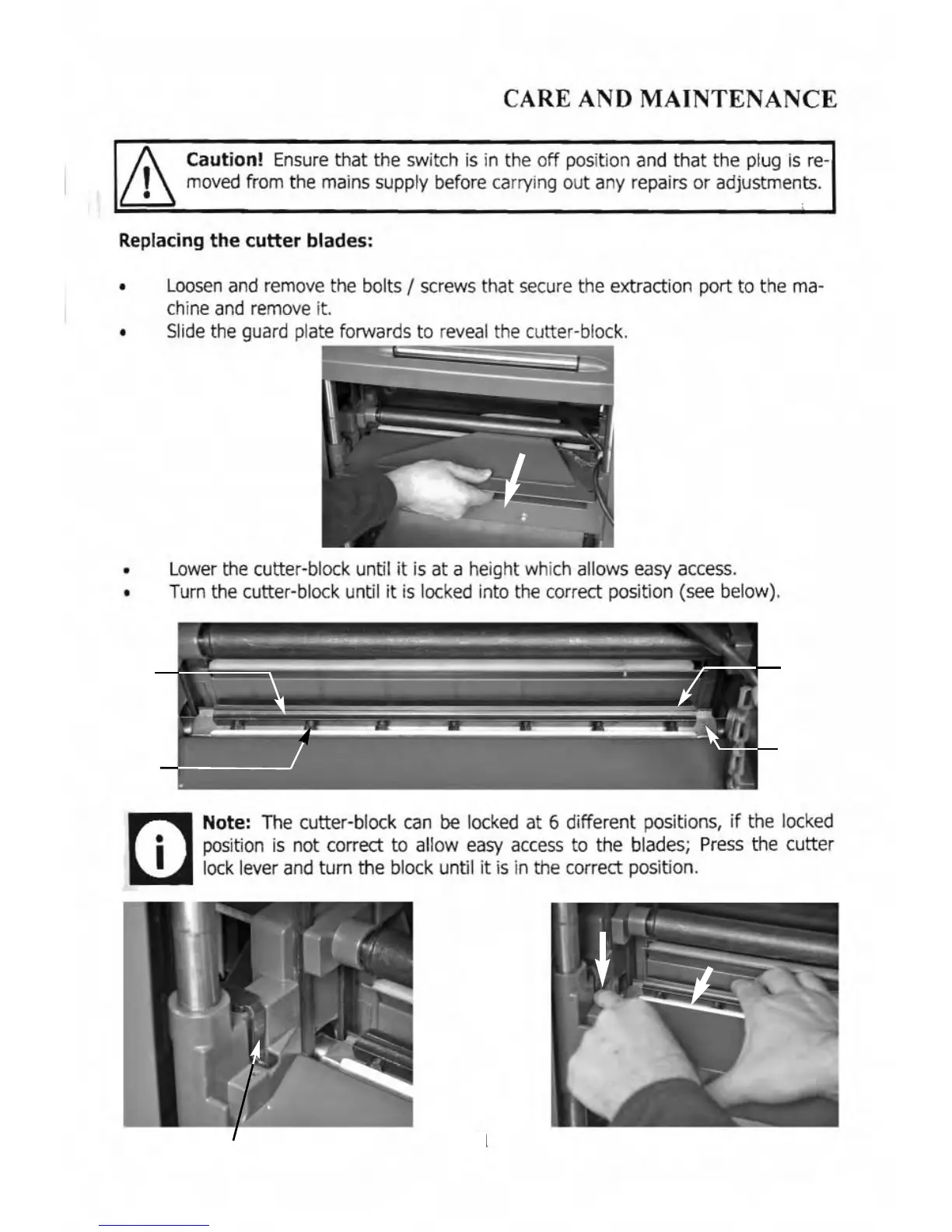 Axminster MB1933 - Care and Maintenance; Replacing the Cutter Blades