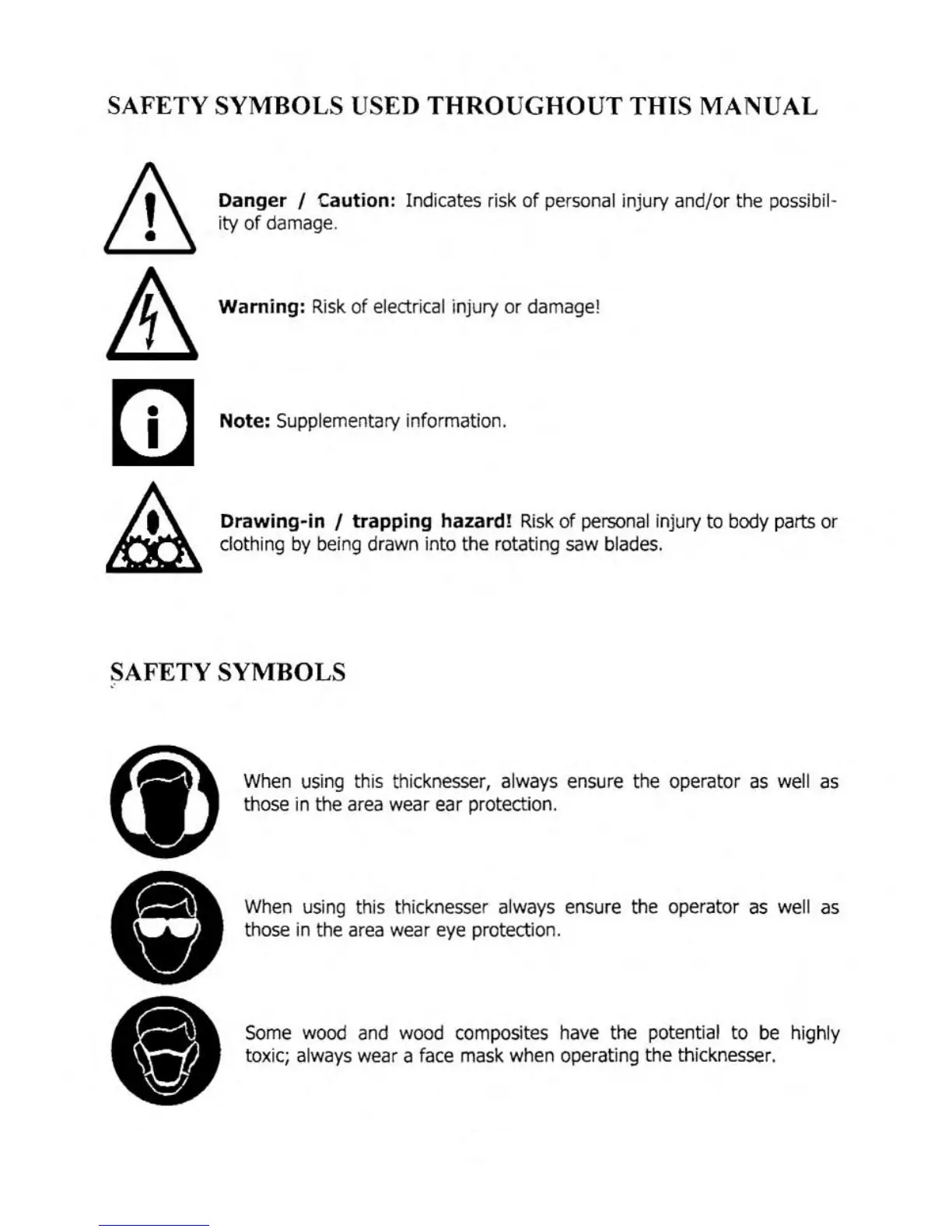 Axminster MB1933 - Safety Symbols Used in the Manual