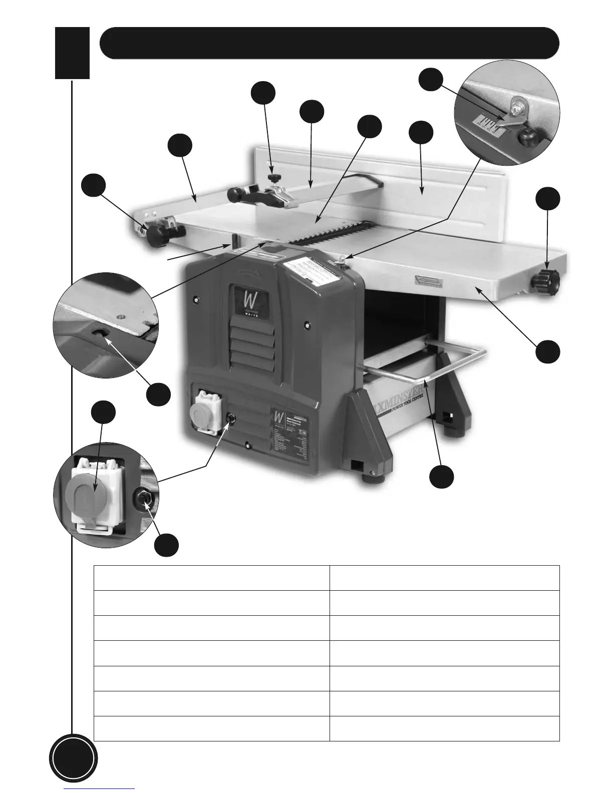 5. Fixed Outfeed Table 9. Cutterblock Guard